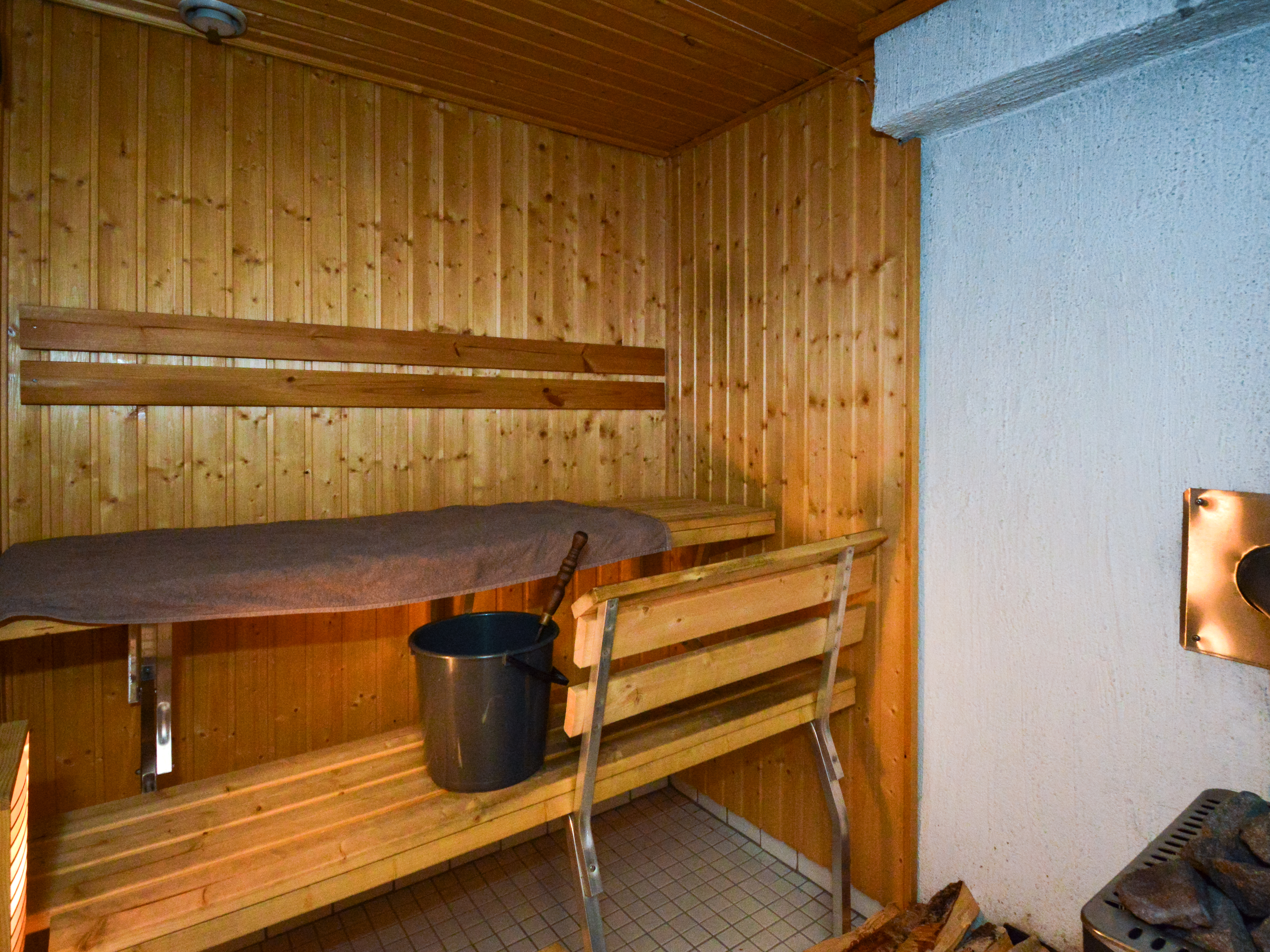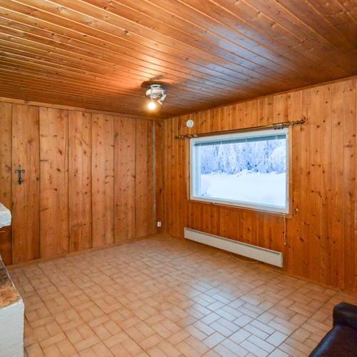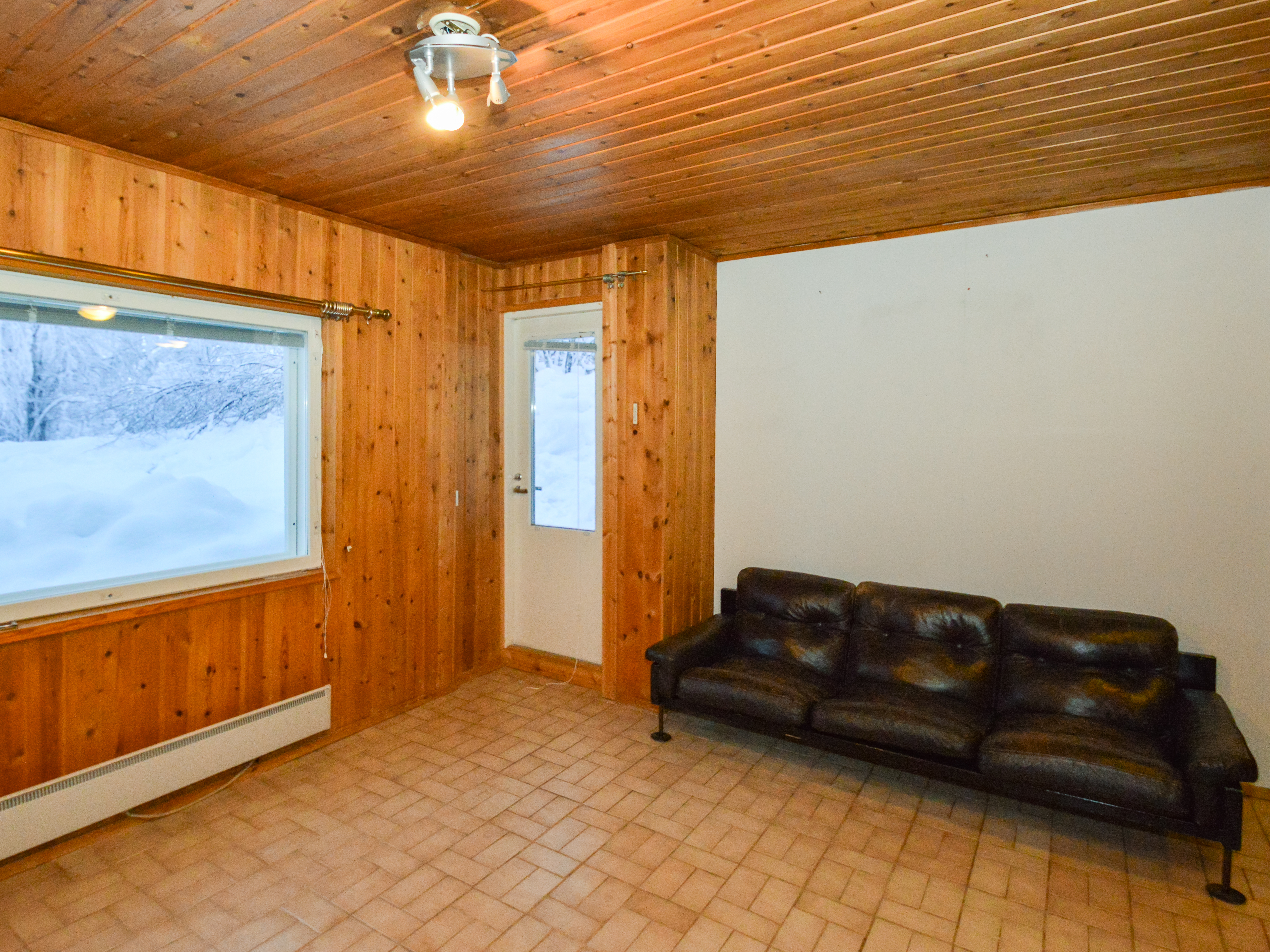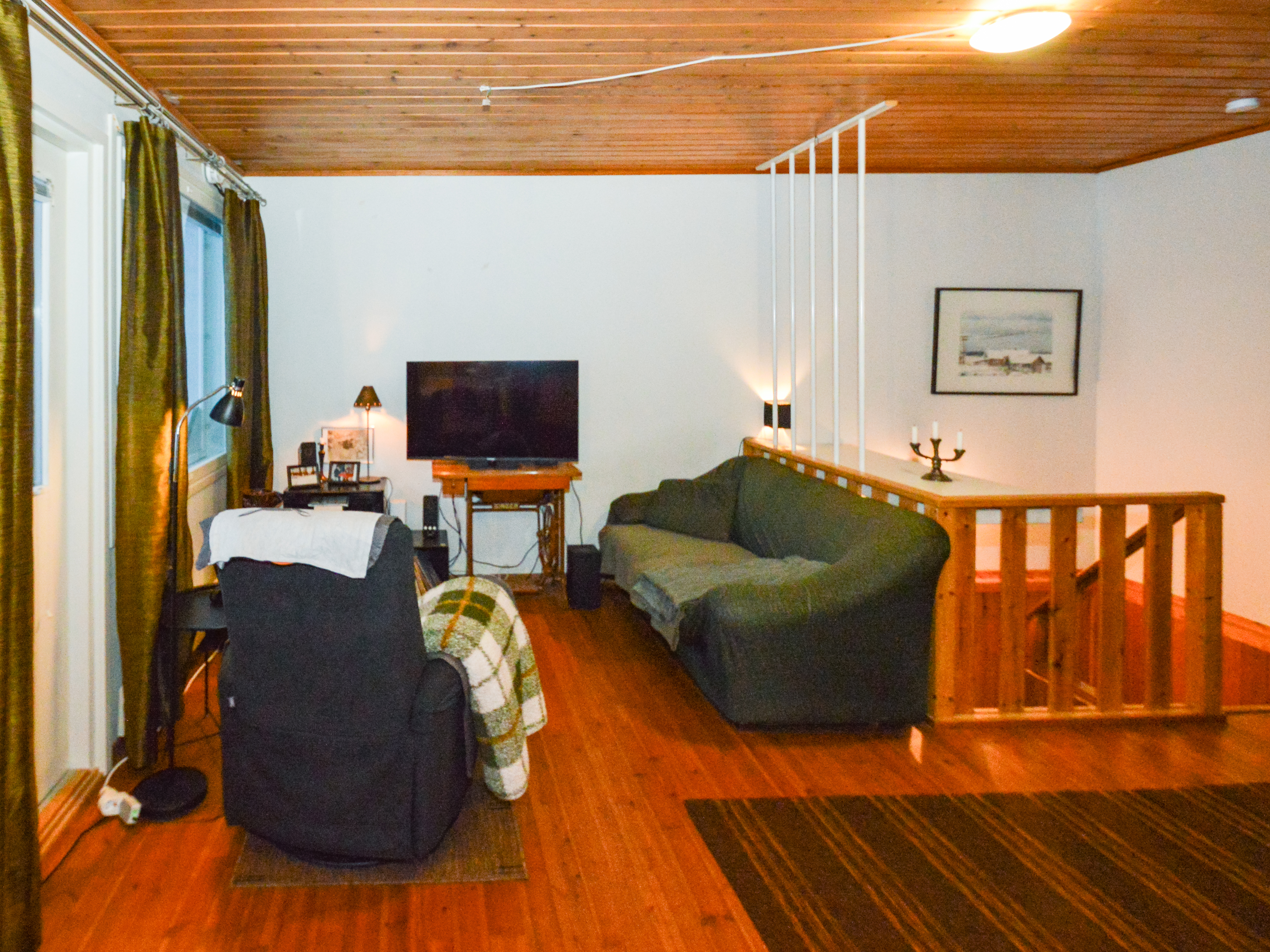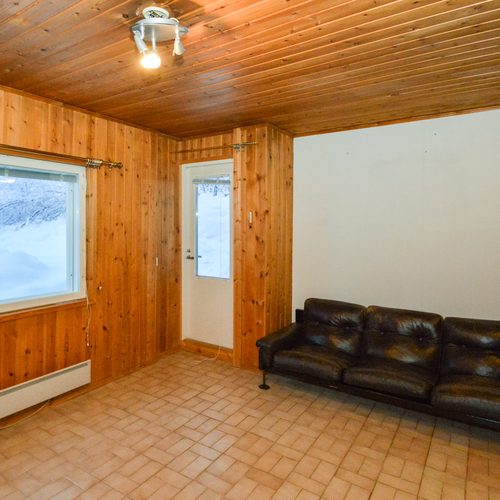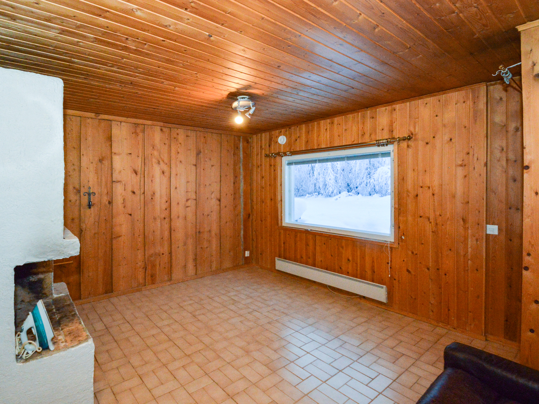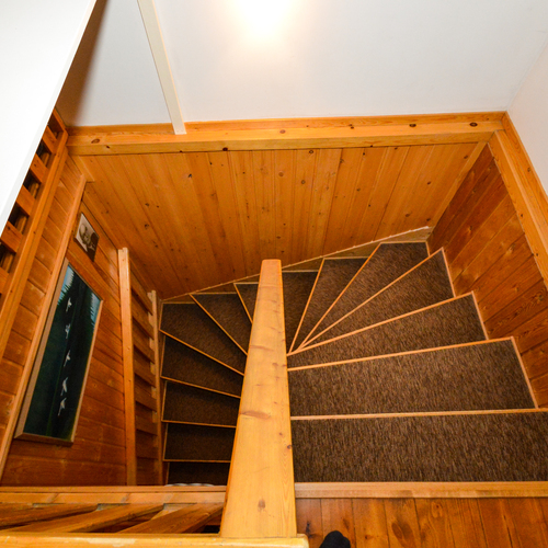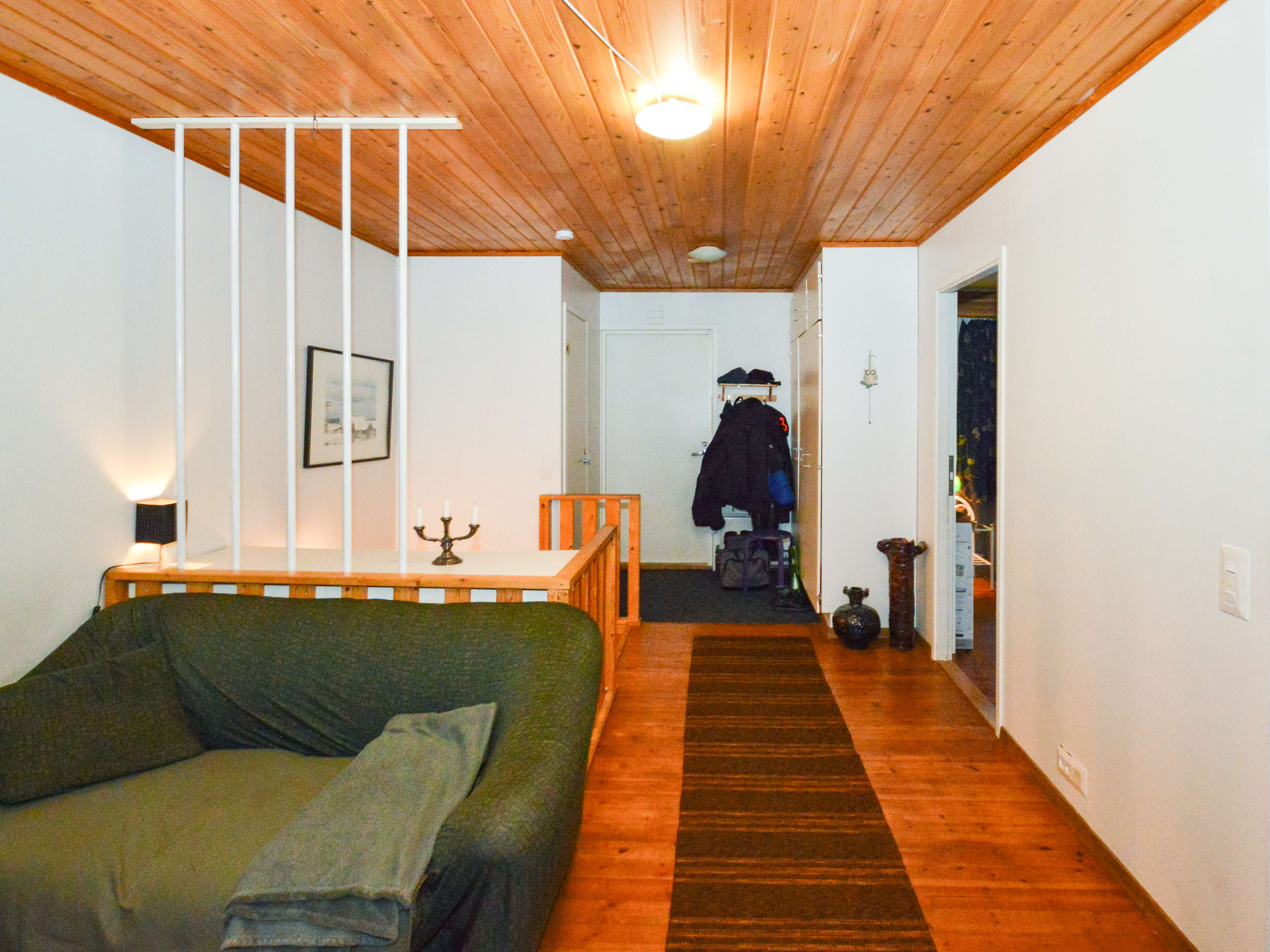 Yläkerrassa yksi makuuhuone ja alakerrassa toinen pienempi makuuhuone takkahuoneen yhteydessä. Alakerran makuuhuoneessa lattialämmitys.