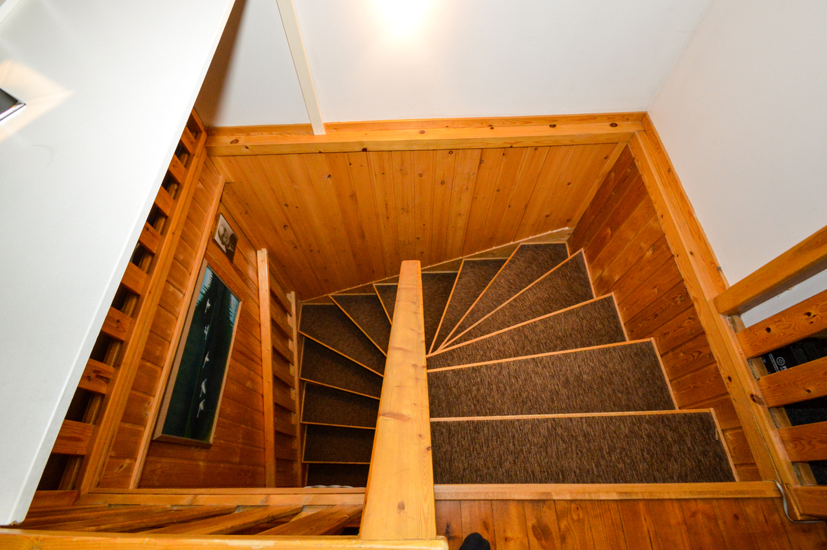 Yläkerrassa makuuhuone, keittiö, olohuone ja wc. Alakerrassa takkahuone, makuuhuone, kylpyhuone/sauna, kaksi varastohuonetta ja kellarikomero.