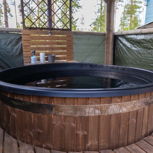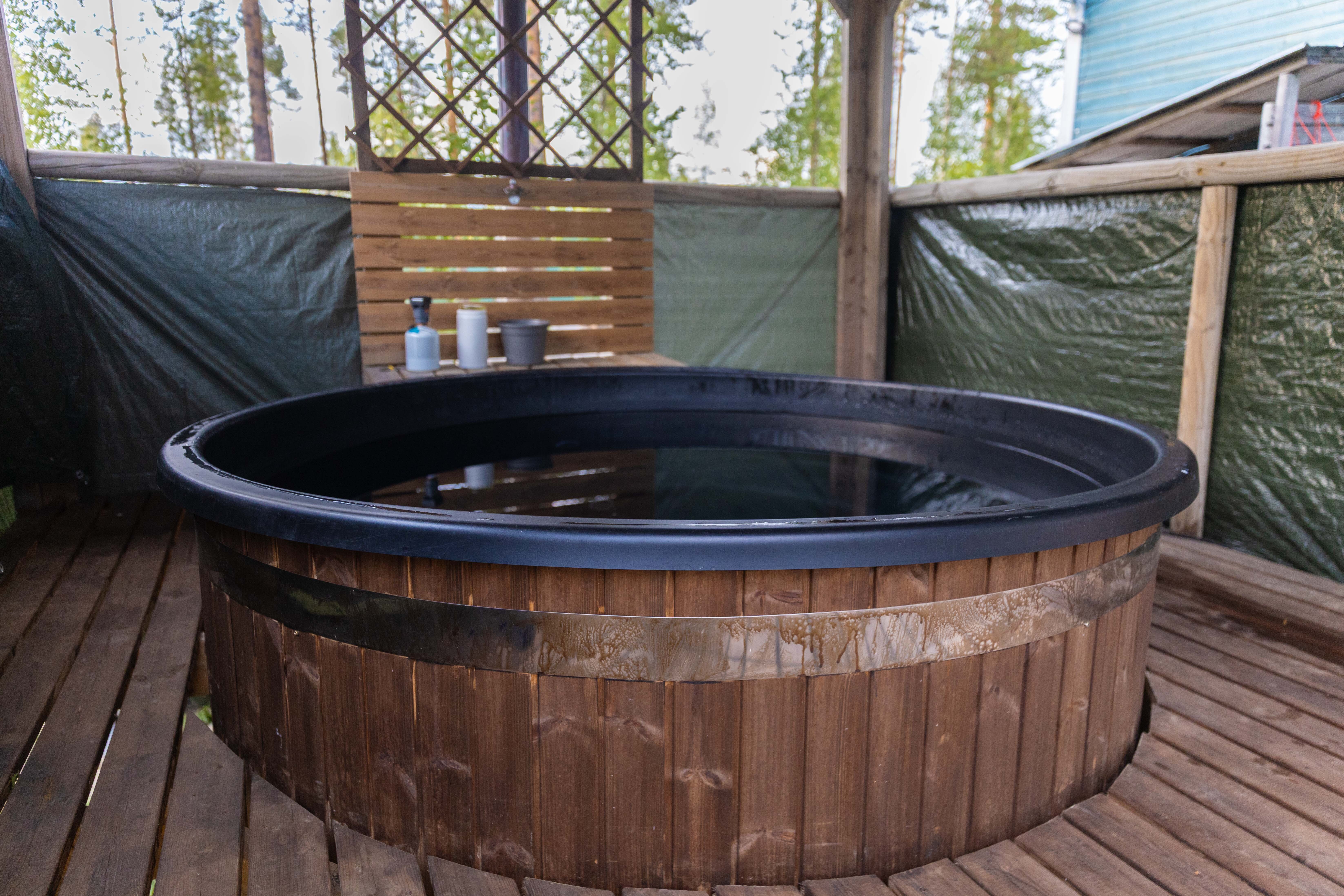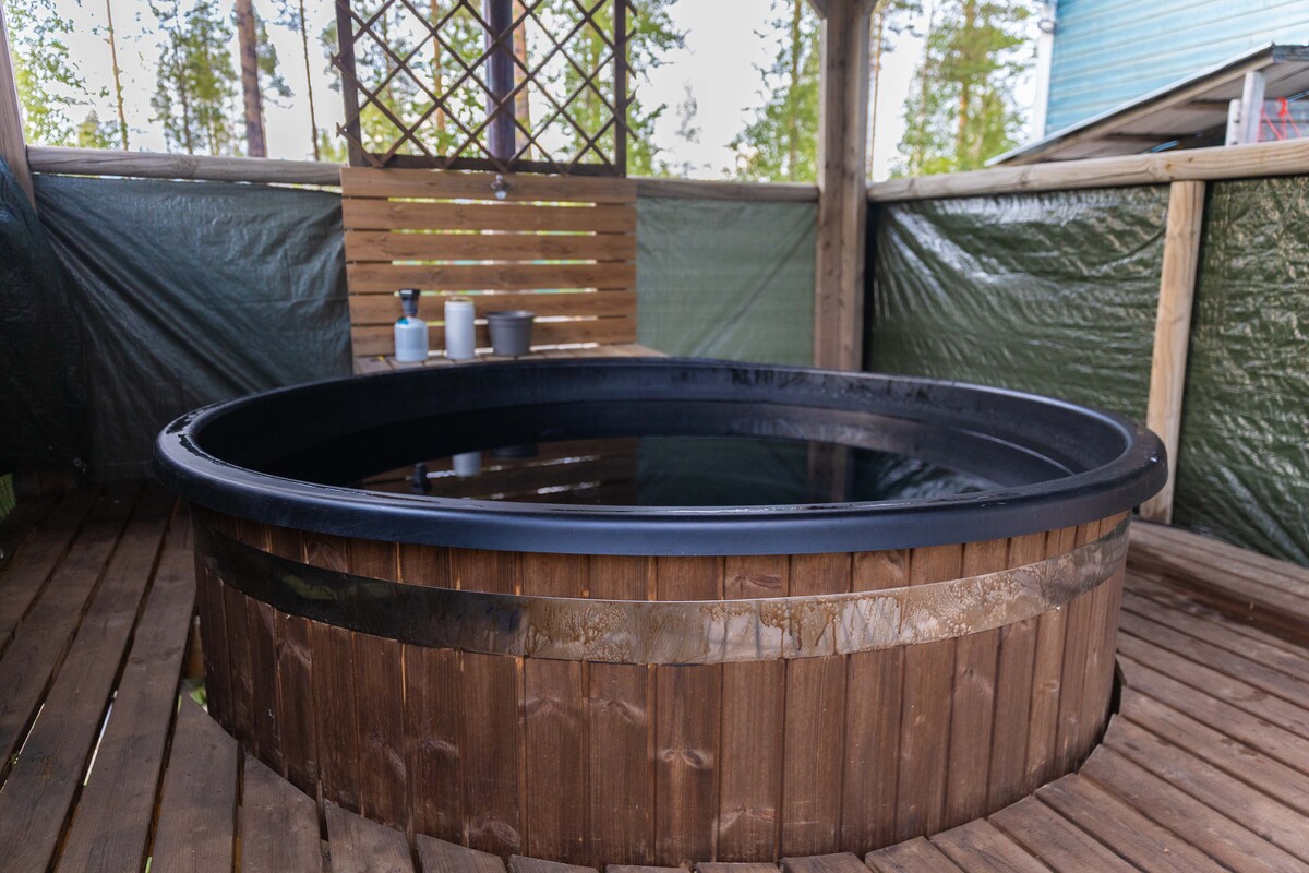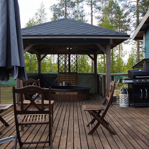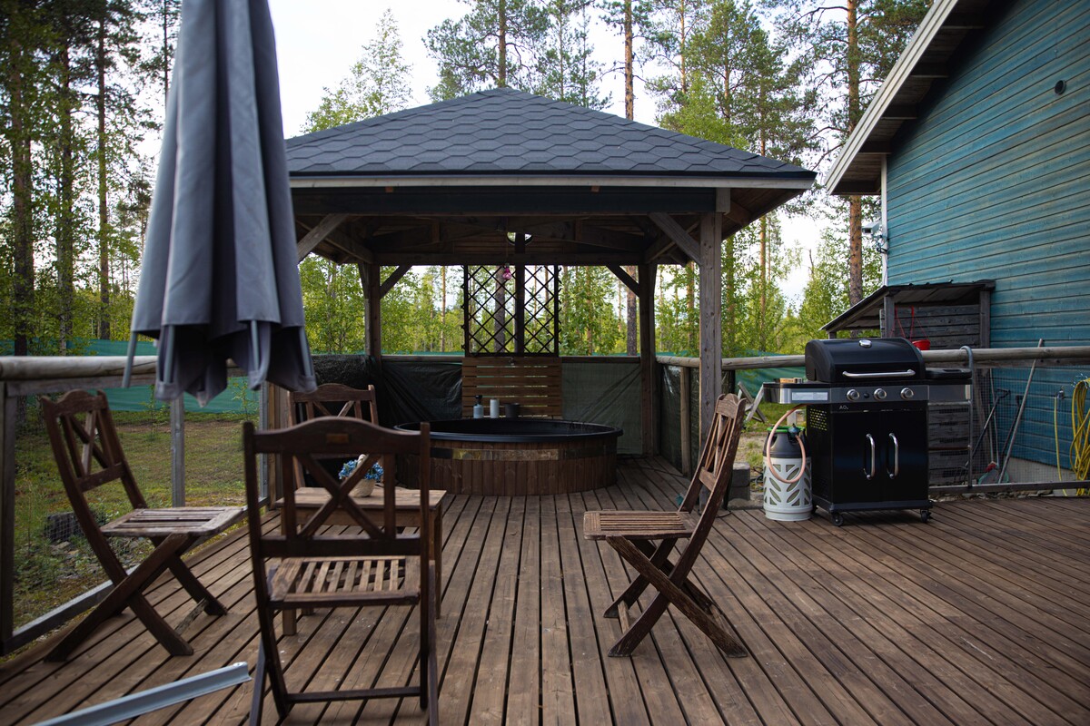 Takapihan terassilla sijaitseva katettu palju luo täydellisen paikan rentoutua vuoden jokaisena päivänä.