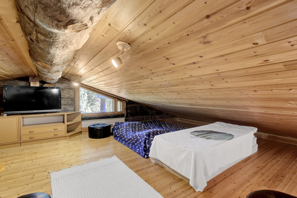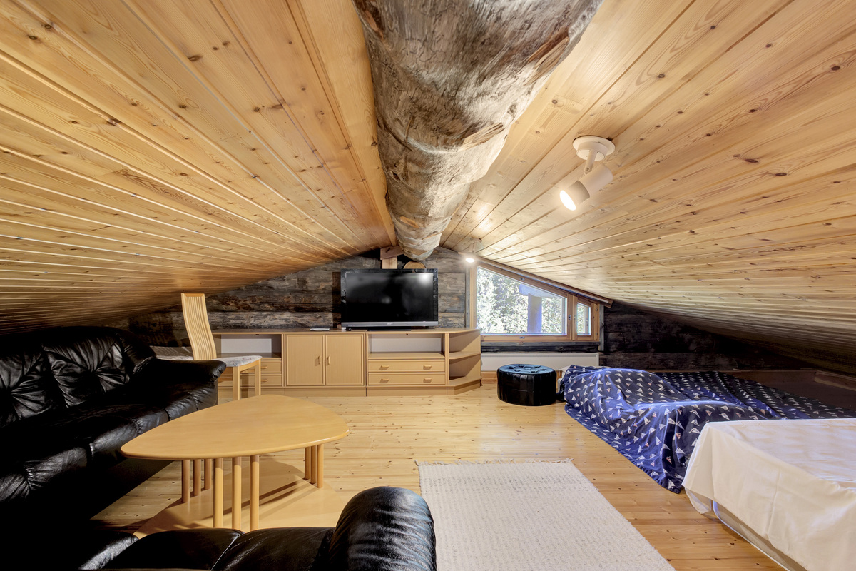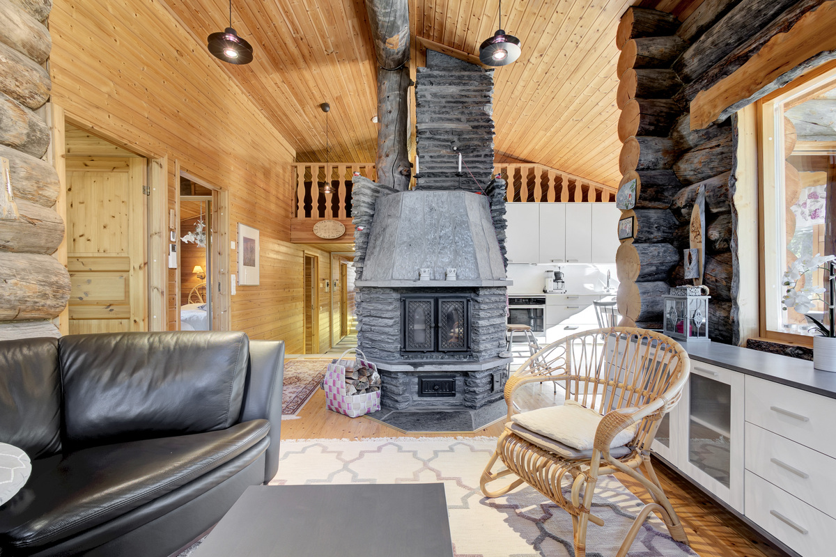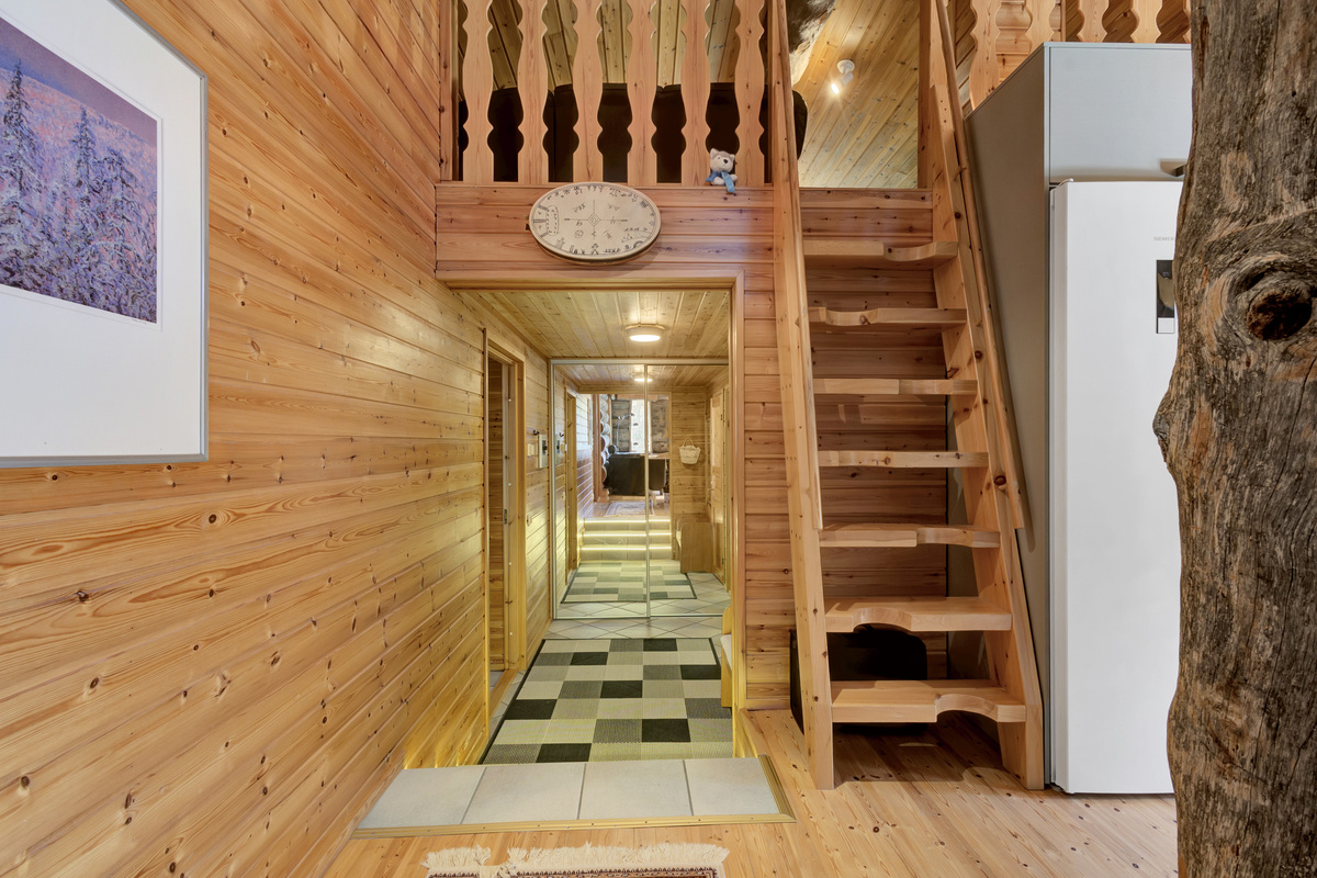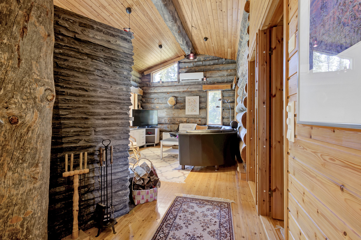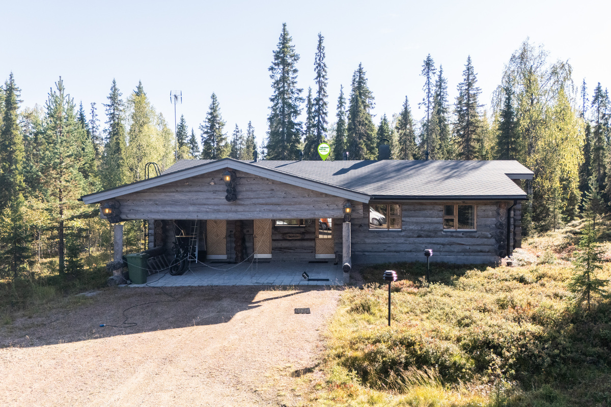 In the heart of Luosto, just 1.5 kilometers from the village services, awaits this stunning log villa. Its peaceful location at the end of a cul-de-sac, beside a mountain stream and surrounded by ancient pines, offers an authentic Lapland atmosphere – yet ski trails, slopes, and the village amenities are all within easy reach.