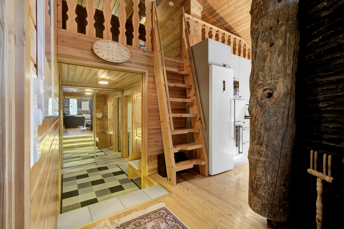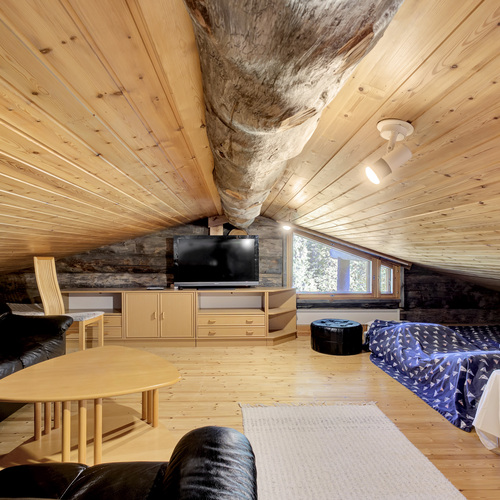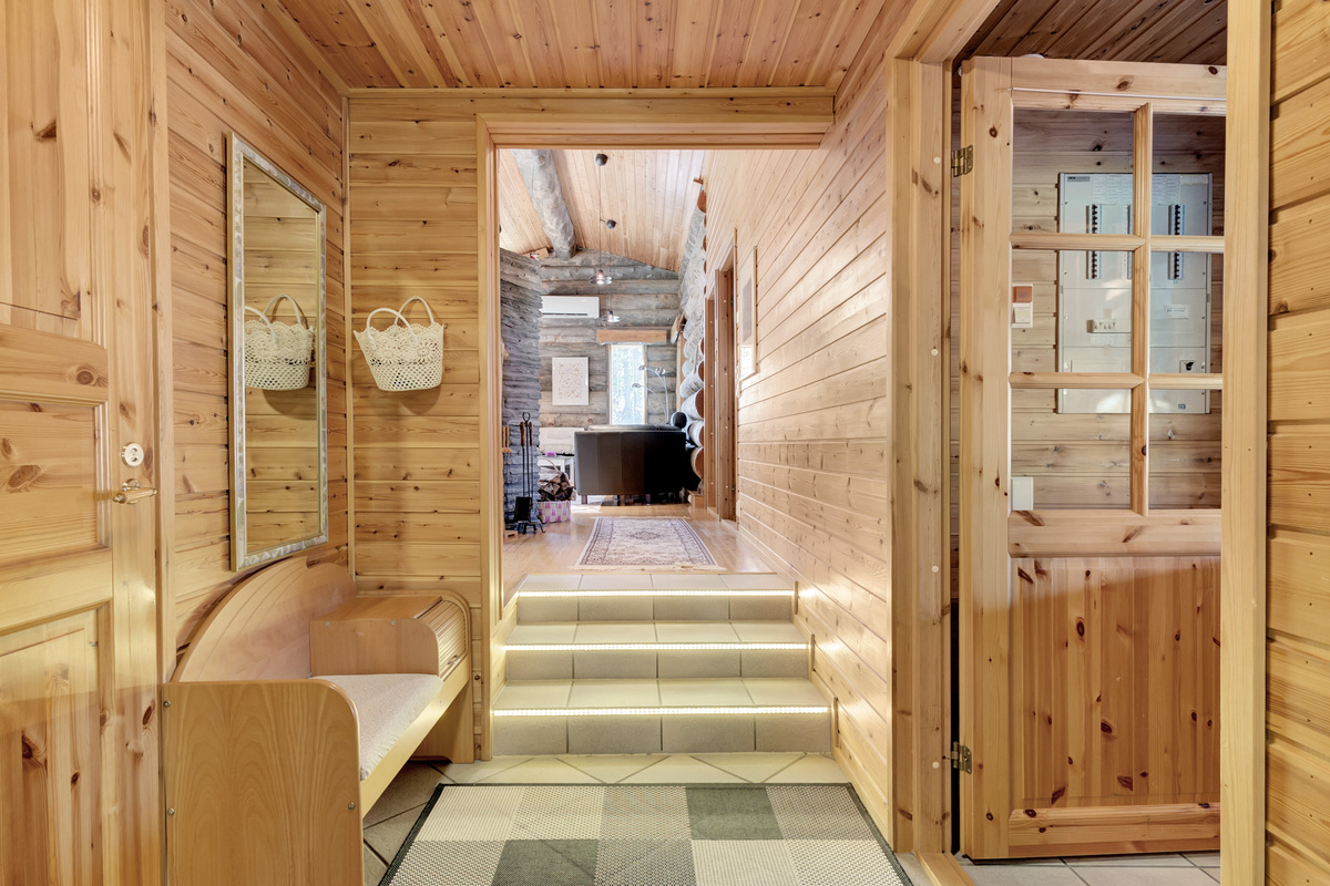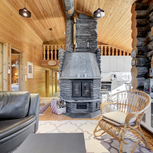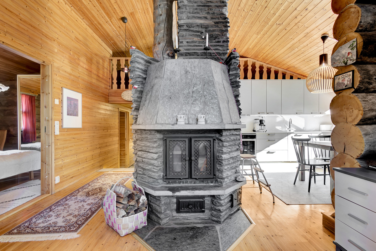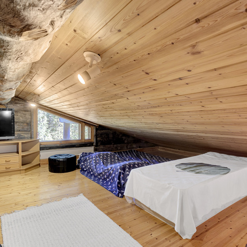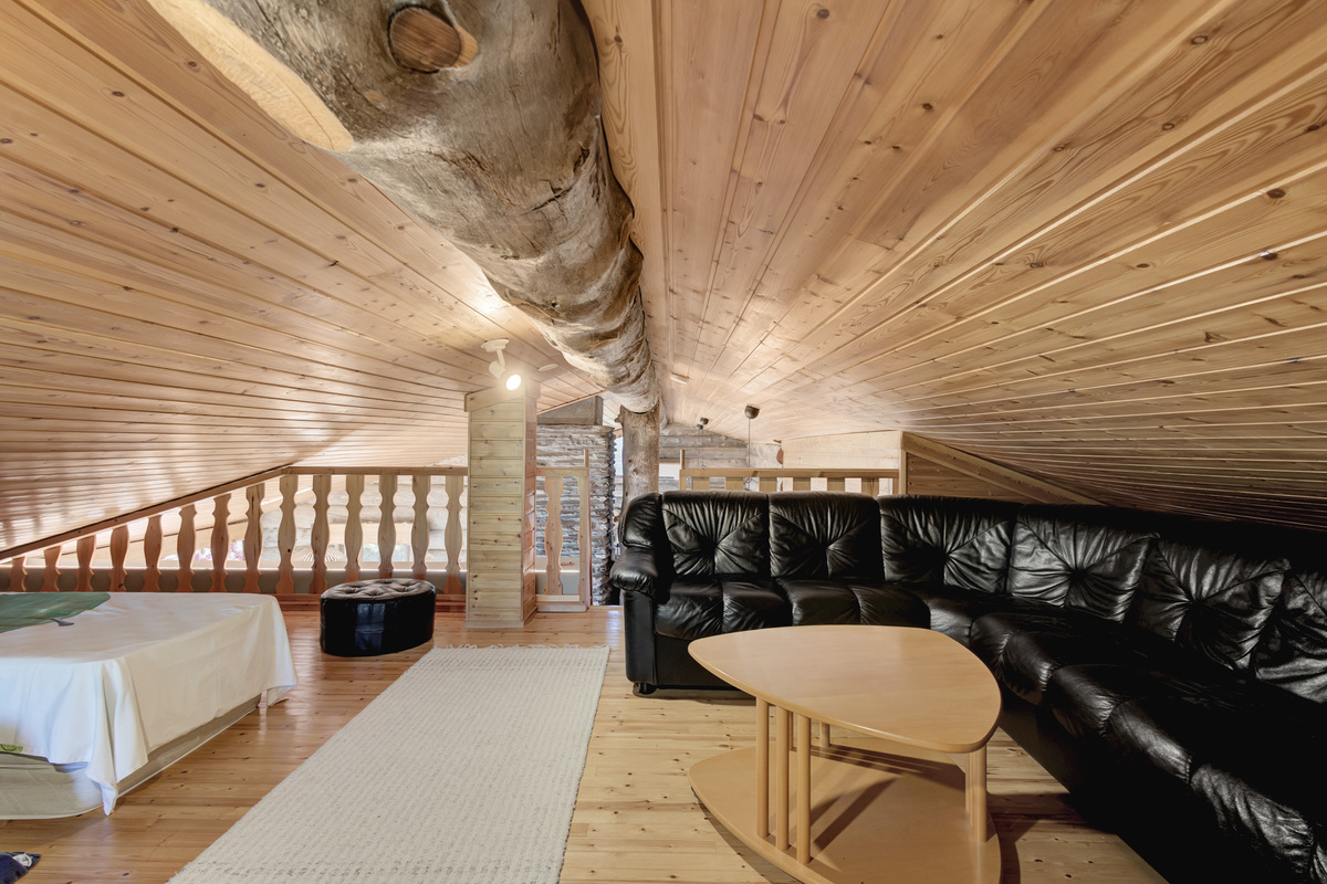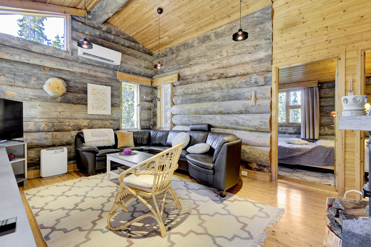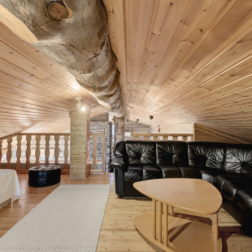 In the heart of Luosto, just 1.5 kilometers from the village services, awaits this stunning log villa. Its peaceful location at the end of a cul-de-sac, beside a mountain stream and surrounded by ancient pines, offers an authentic Lapland atmosphere – yet ski trails, slopes, and the village amenities are all within easy reach.