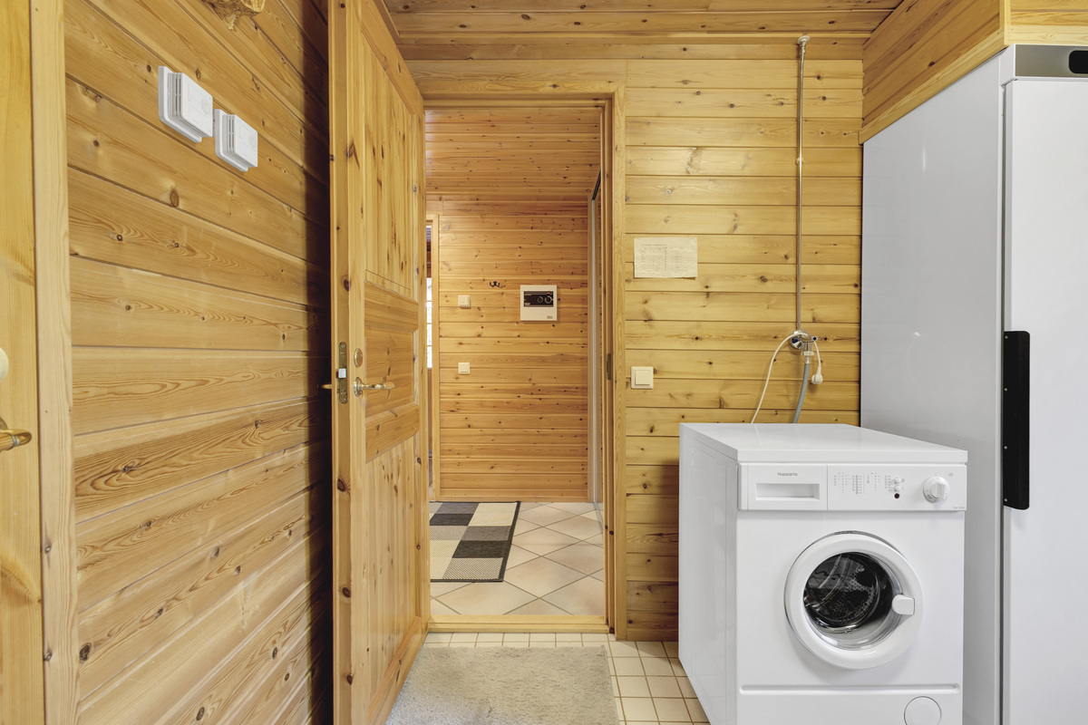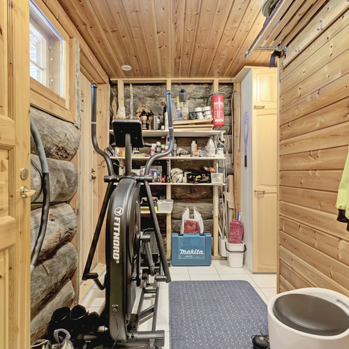 Completed in 1994 and final inspection in 1996, this solid silver pine log house (250–350 mm) has been kept in excellent condition. Significant updates have been made: bitumen roof and additional attic insulation renewed in 2017, mechanical ventilation with roof fan installed in 2020, and a high-quality Puustelli kitchen with stone countertops added in 2020. Heating is supported by a large heat-storing Hopealoimu fireplace and an air-source heat pump.