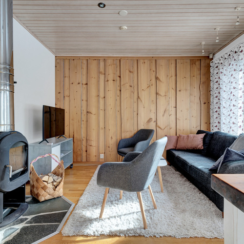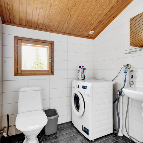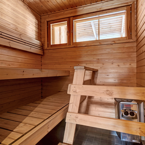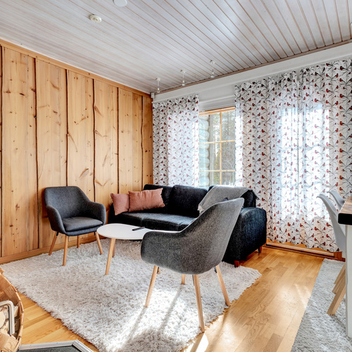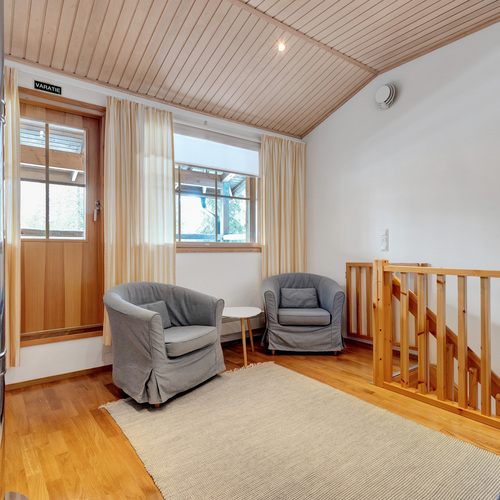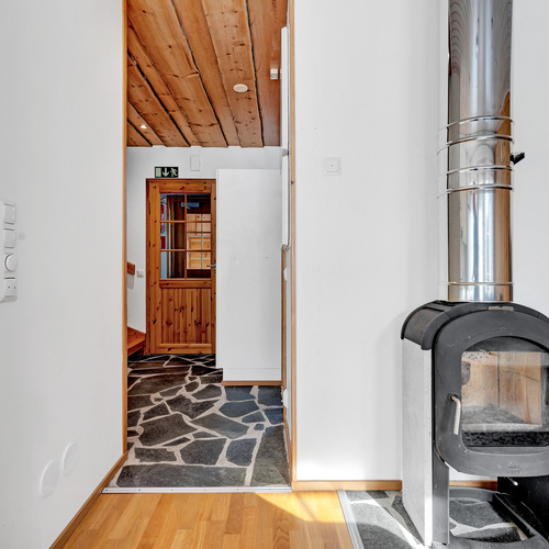 Upstairs, you’ll find a spacious lounge area ideal for resting, spending time together, or accommodating additional guests. This level also features a separate WC, shower room, and a private sauna – the perfect combination after a day of outdoor activities. The generous balcony faces Aarnilampi and offers beautiful views in every season.