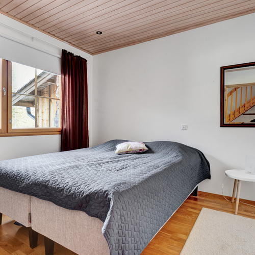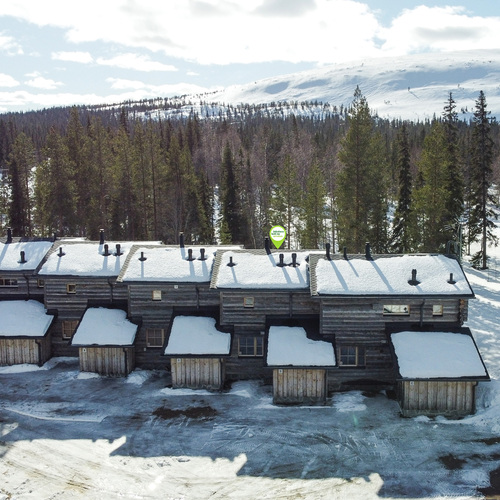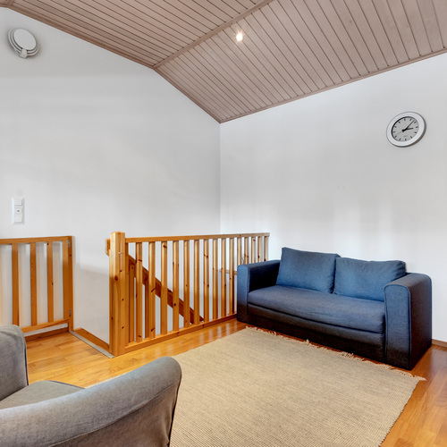 On the entrance floor, a cosy open-plan living room and kitchen welcome you with the inviting ambiance of natural log and open views, creating a relaxed setting for shared moments. This floor also includes one bedroom, a separate WC, and a practical entrance hall – everything designed for effortless living and comfortable holidays.