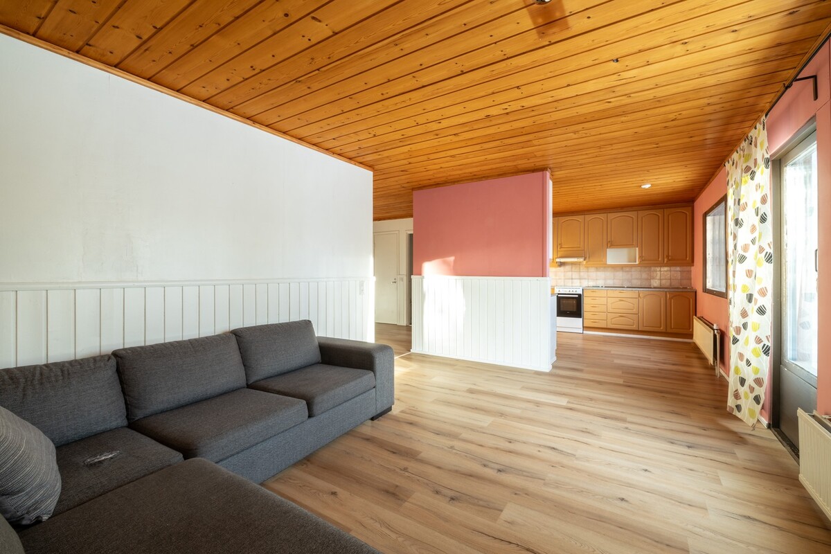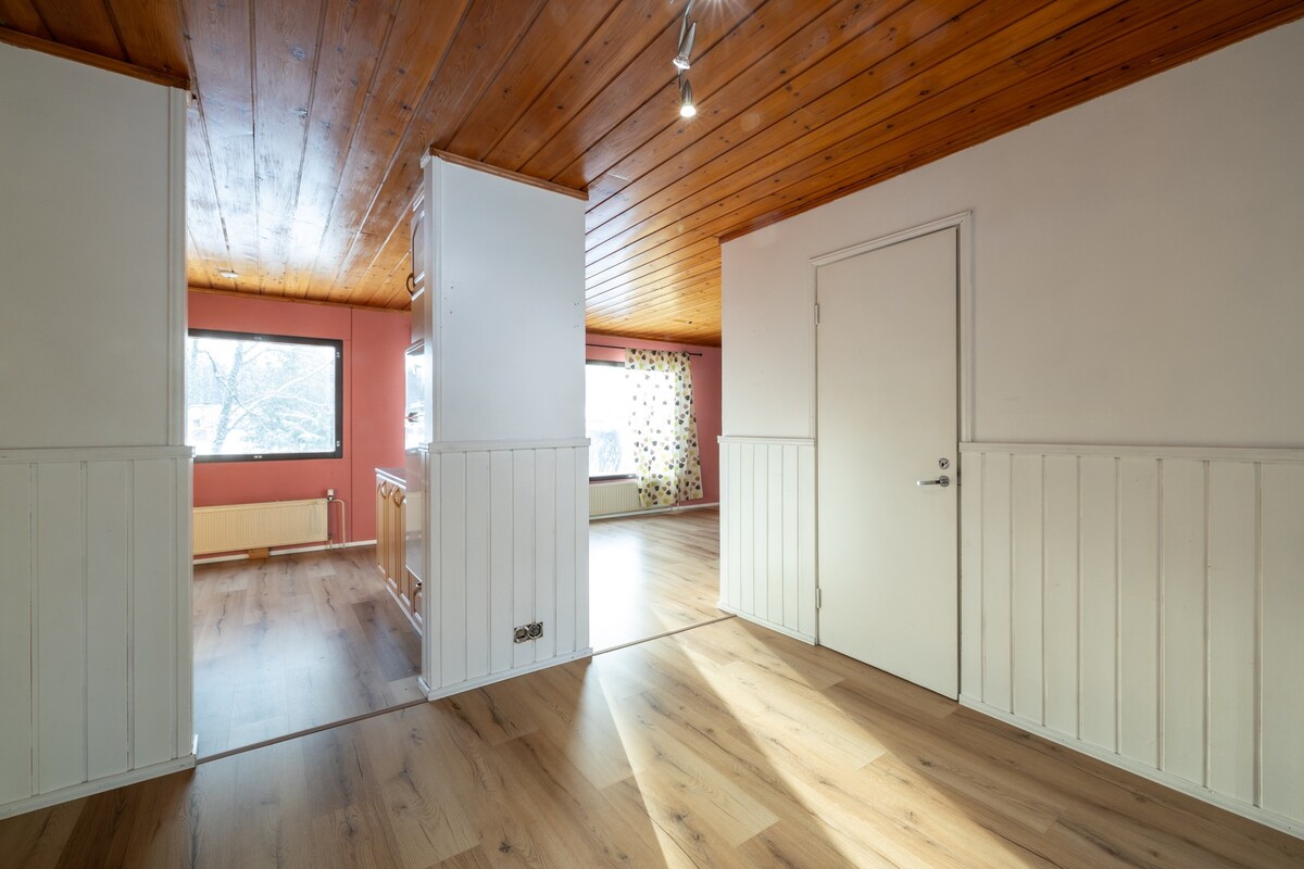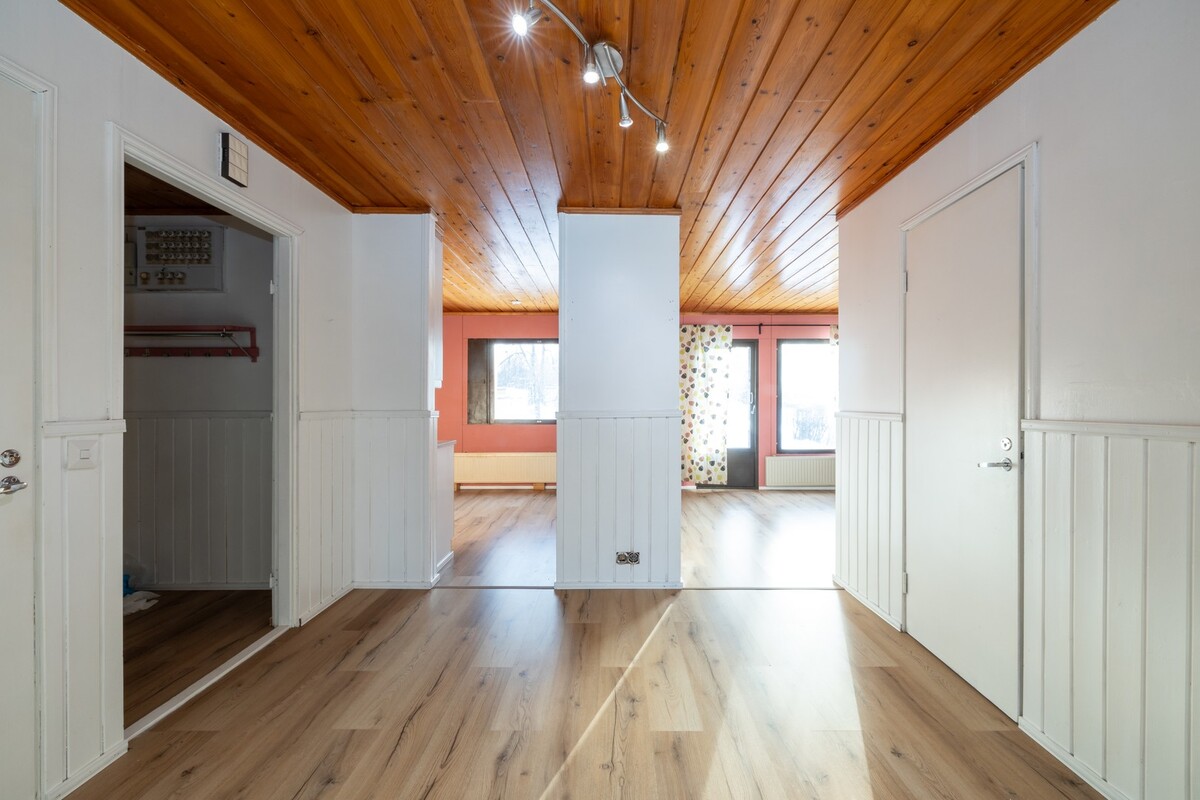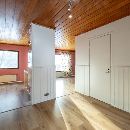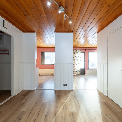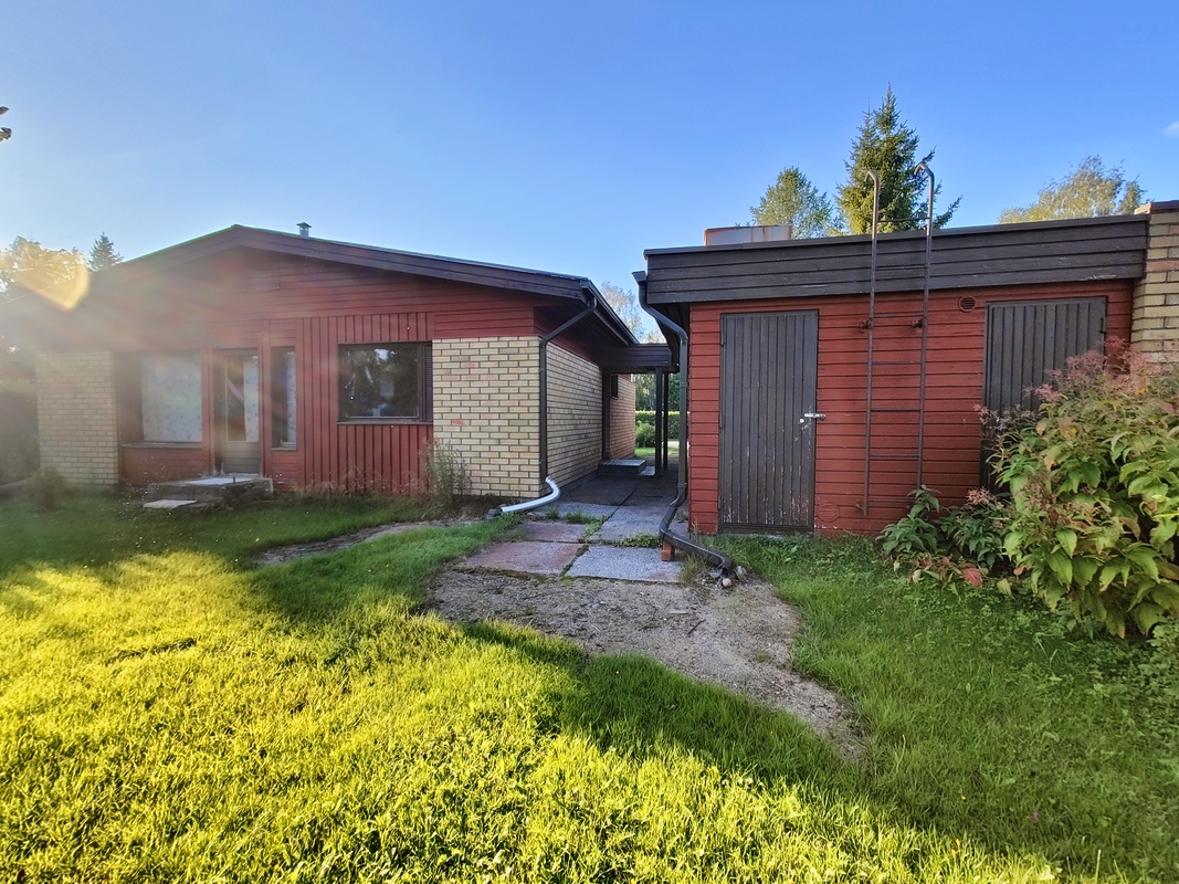 Kahden makuuhuoneen talo kompaktilla tontilla. Pikku pintaremontilla tässä olisi hyvä talo esim. pienelle perheelle. Sovi