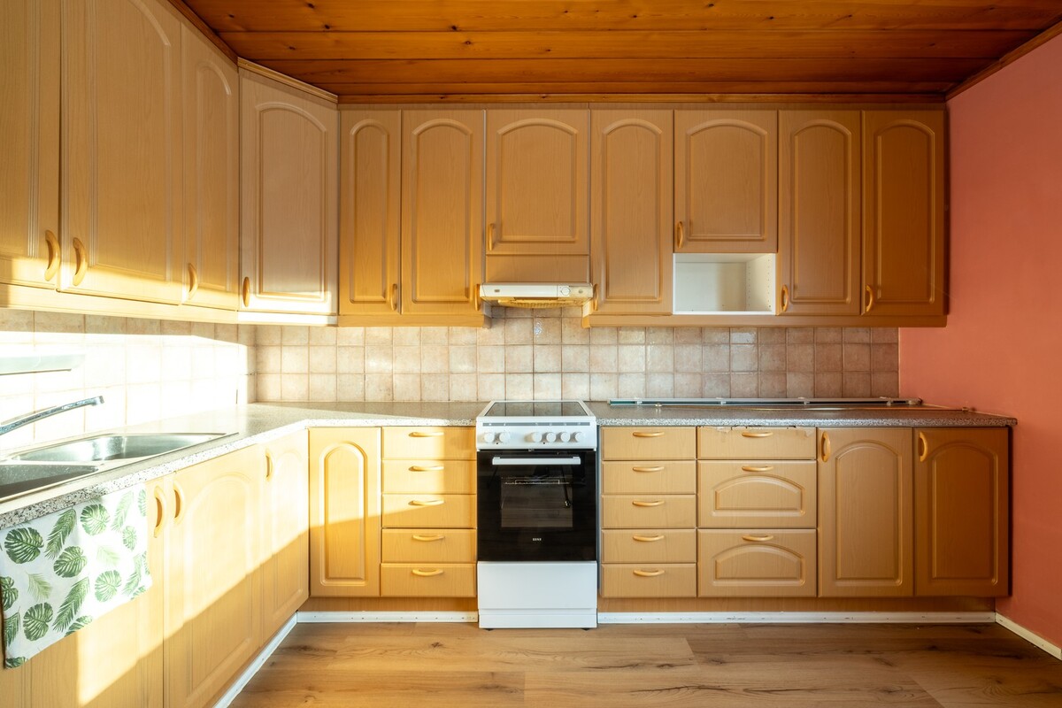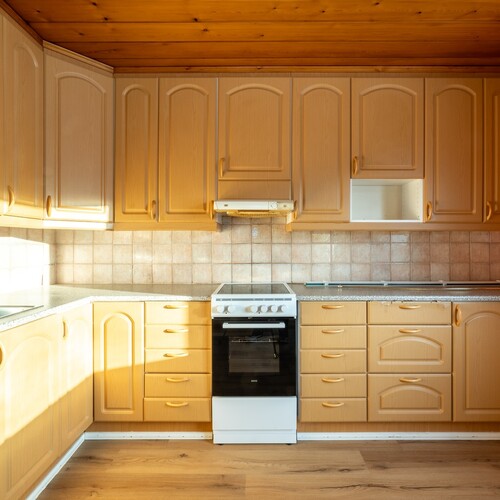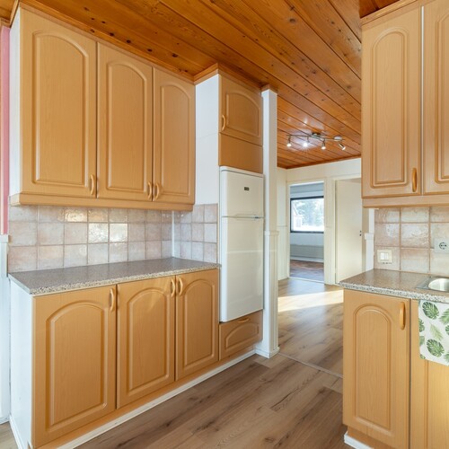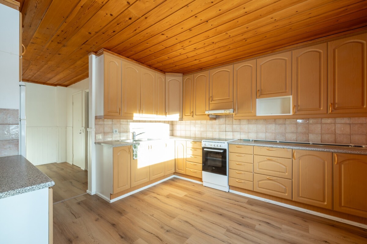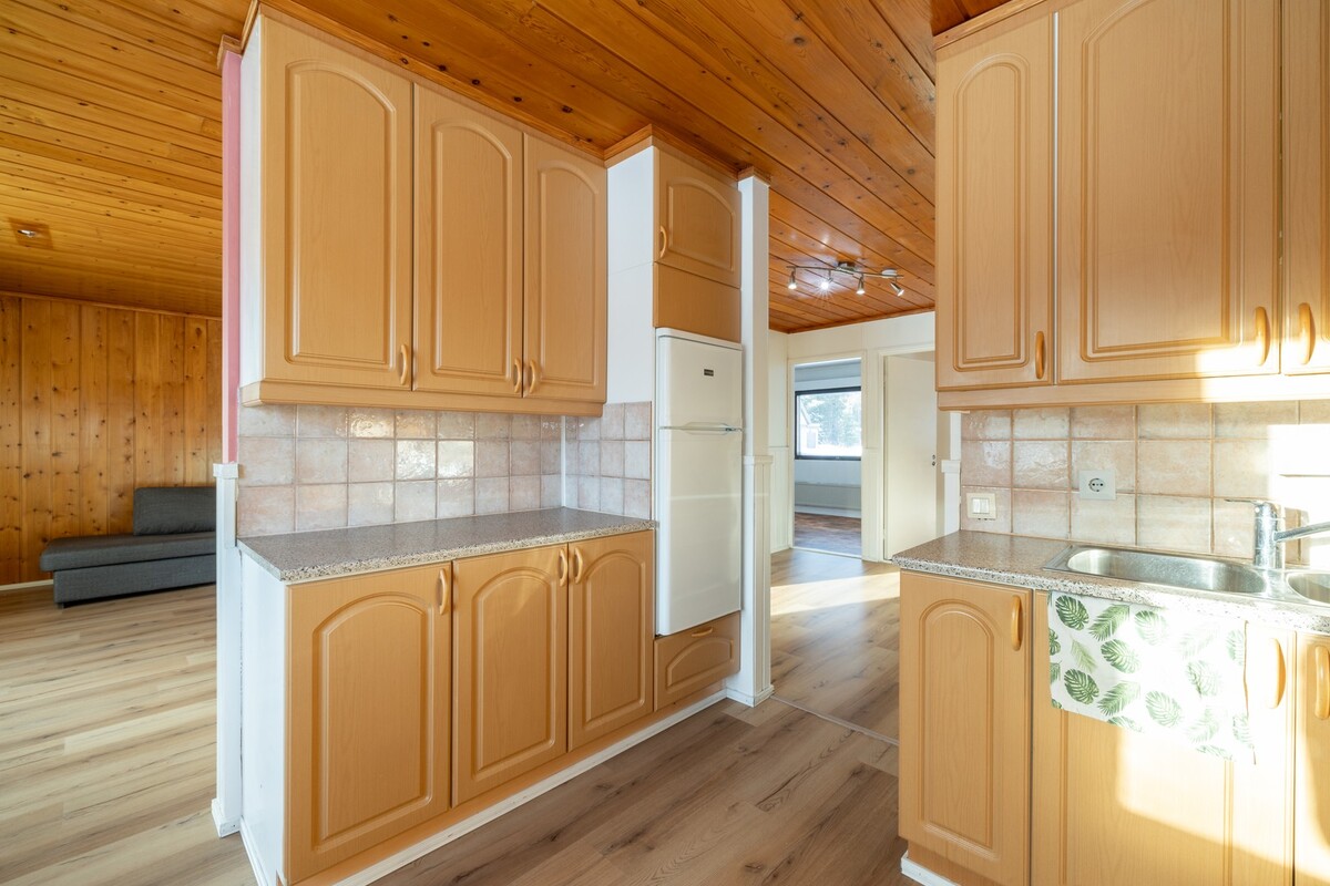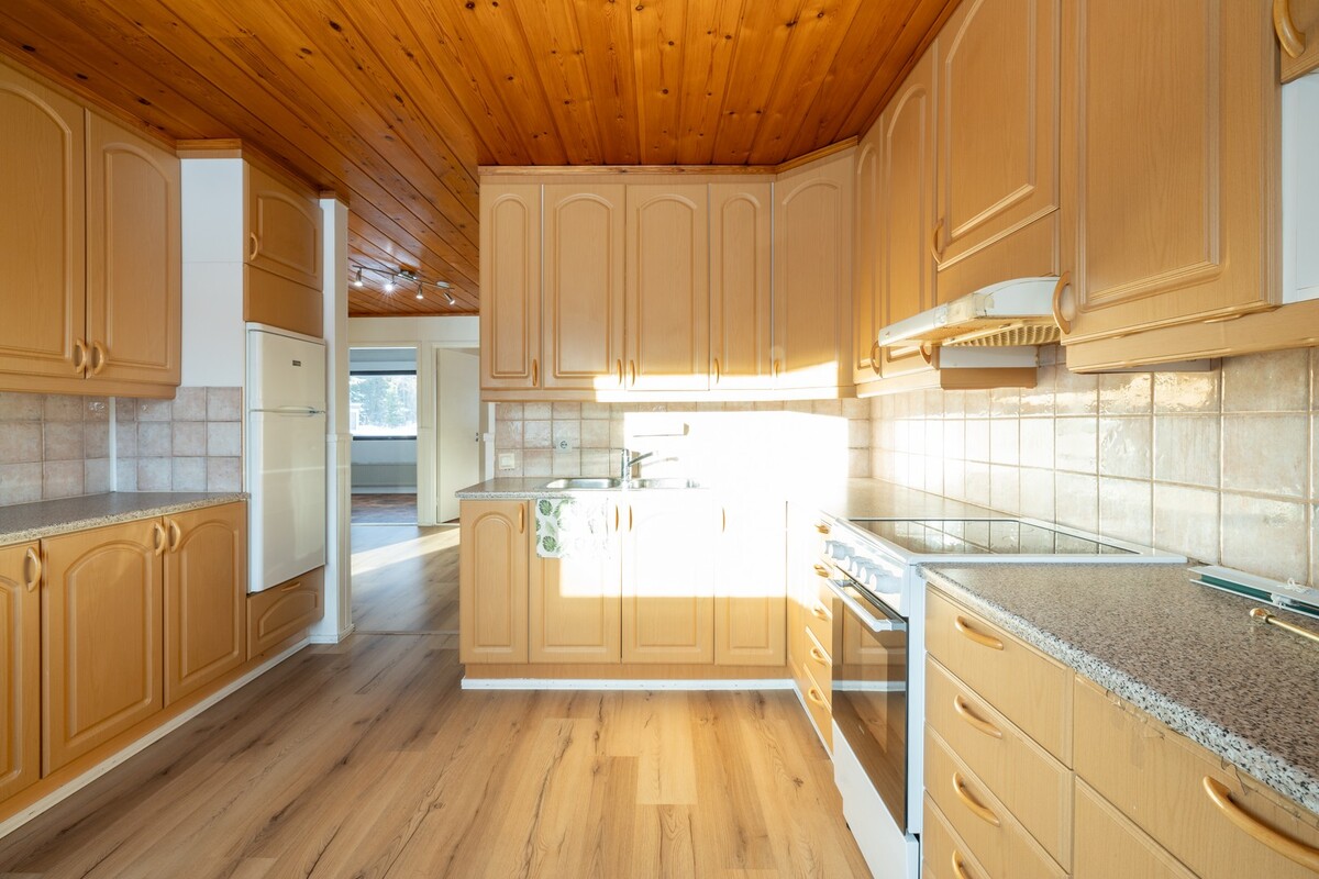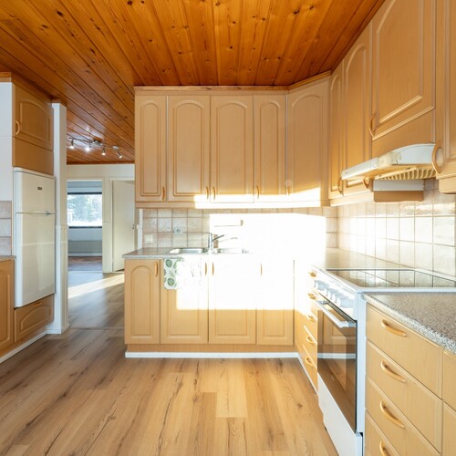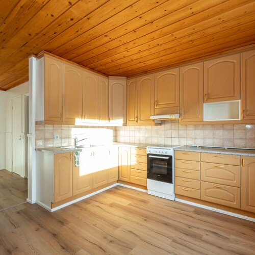 Varusteet: sähköliesi, liesituuletin hormilla, jenkkikaappi