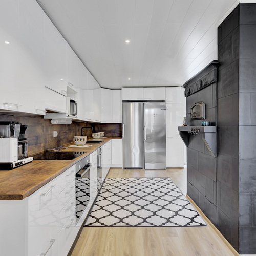 Kodin sydämenä toimii moderni tupakeittiö, joka on varustettu kattavilla kodinkoneilla, kuten induktioliedellä, erillisuunilla ja astianpesukoneella. Tunnelmaa ja lämpöä tuovat olohuoneen varaava takka sekä keittiön leivinuuni. Kylpyhuone ja kodinhoitohuone on viimeistelty laadukkaasti ja mukavuutta lisää miellyttävä lattialämmitys. Koko talon lämmöneristeet on uusittu, ja vesikatto on kokonaisuudessaan päivitetty vastaamaan nykypäivän vaatimuksia.