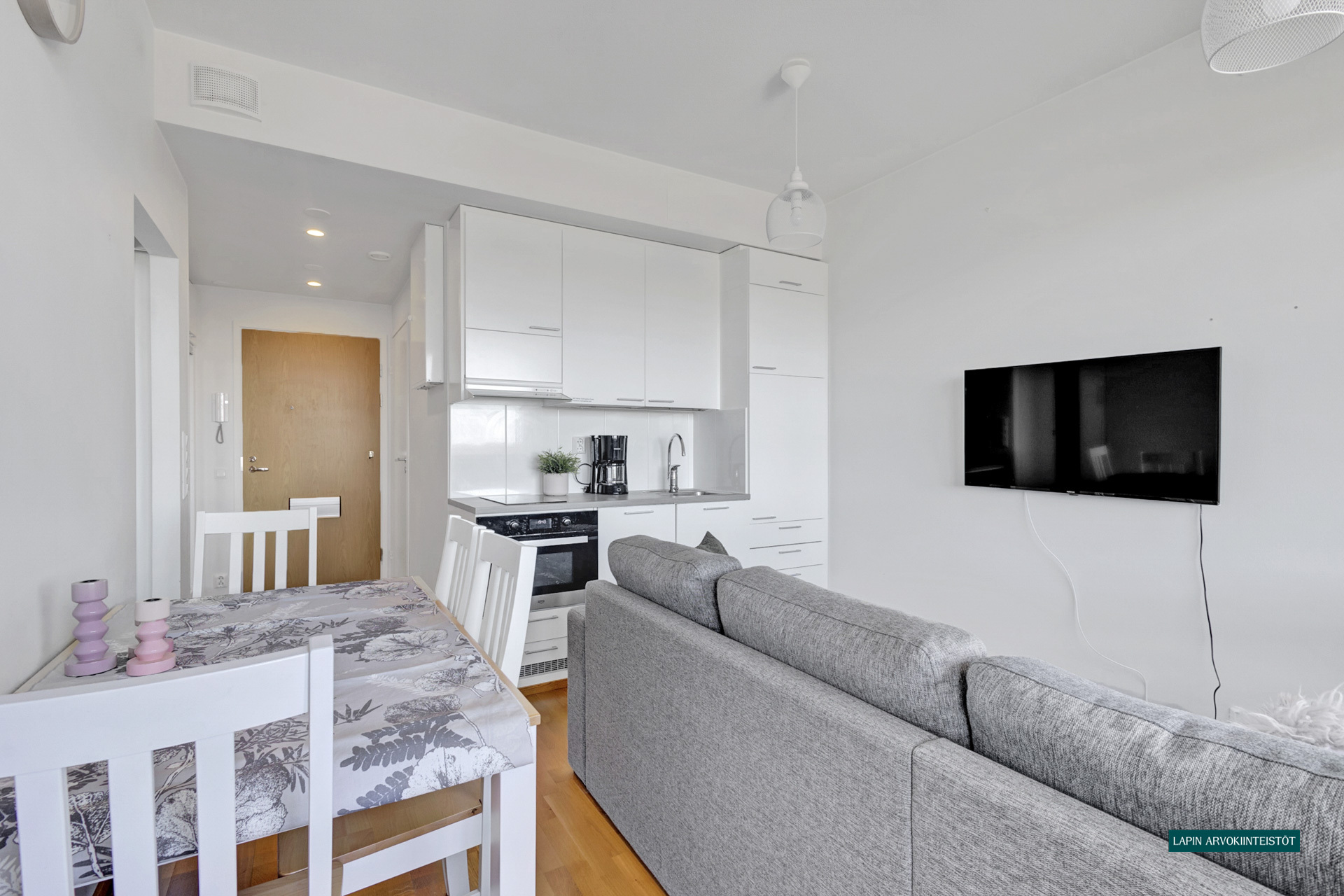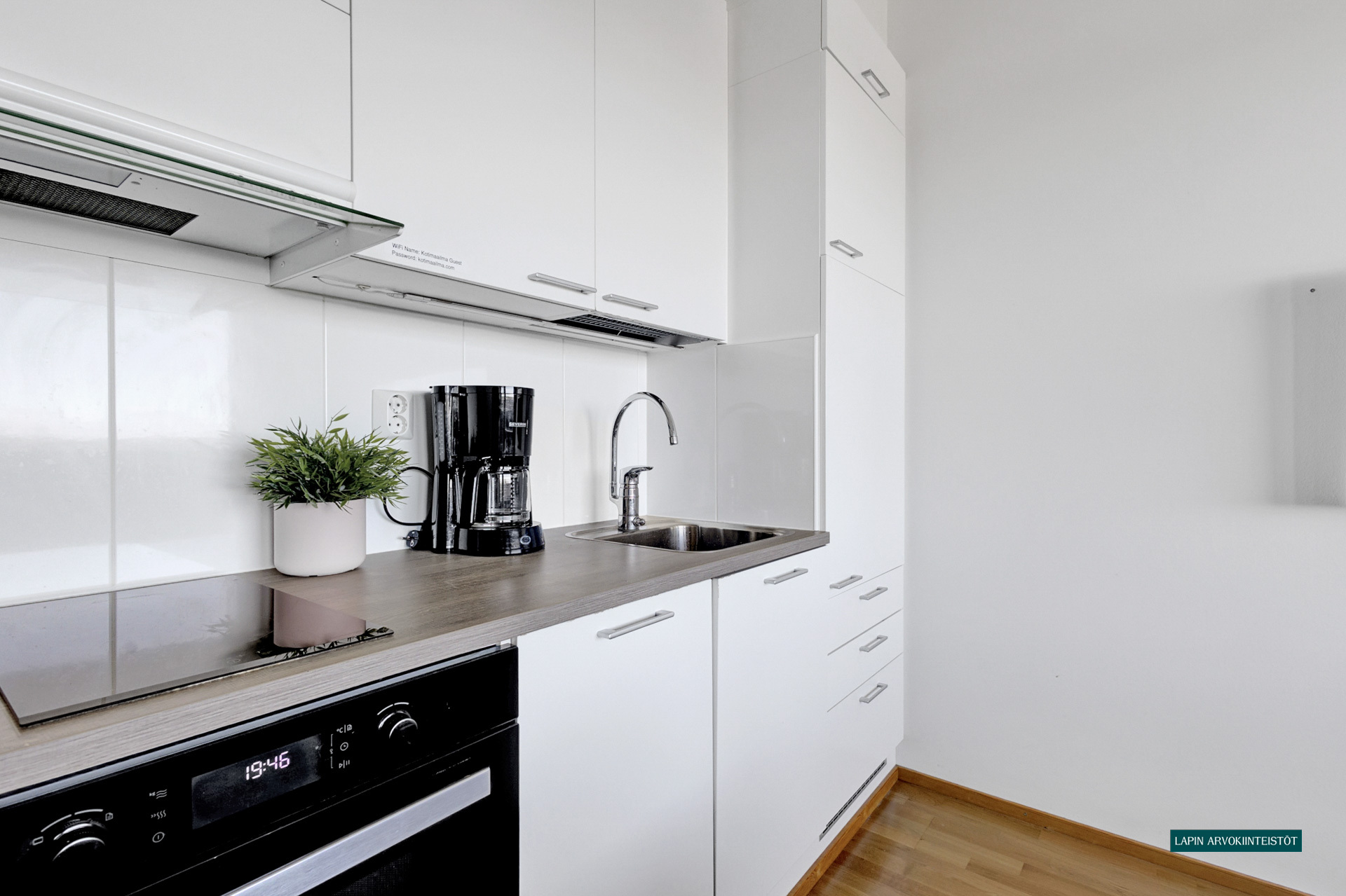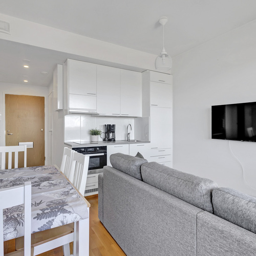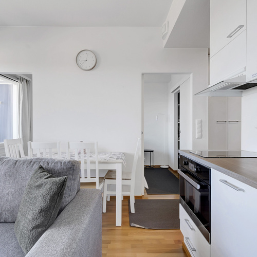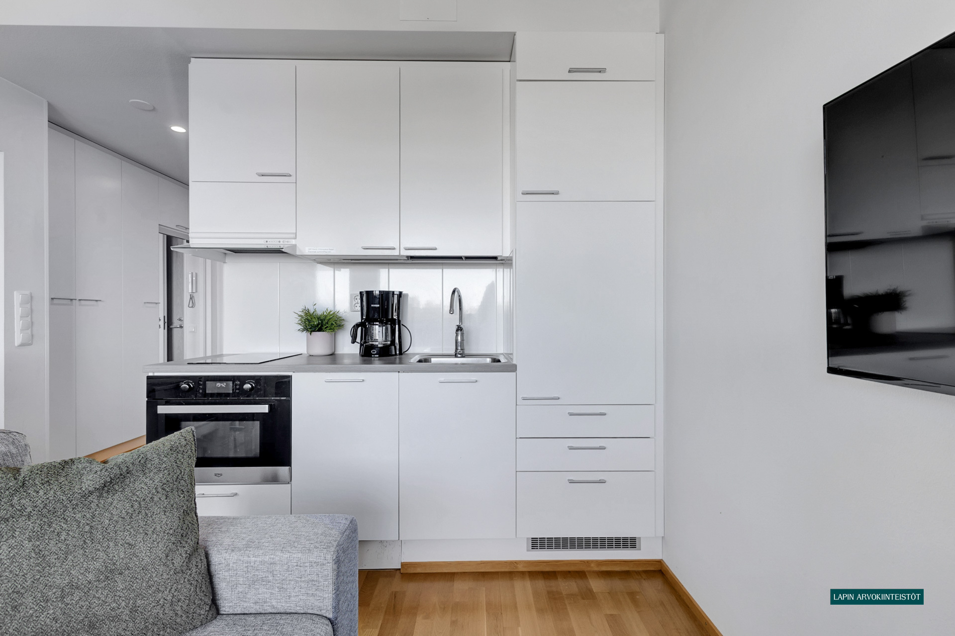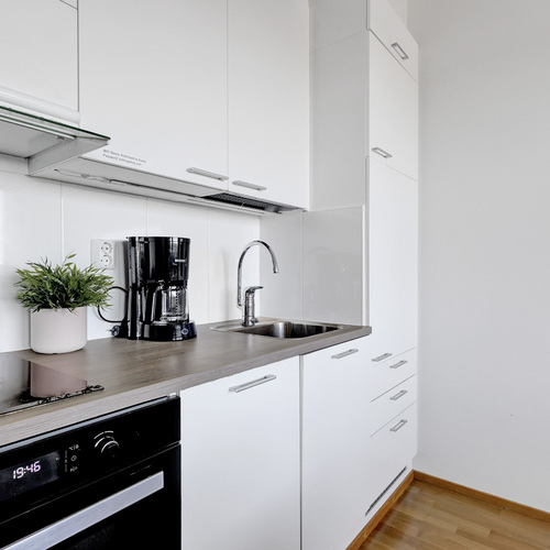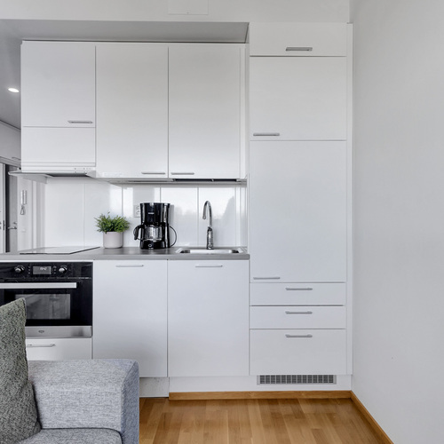 Varusteet: jääkaappi, induktioliesi, mikroaaltouuni, astianpesukone