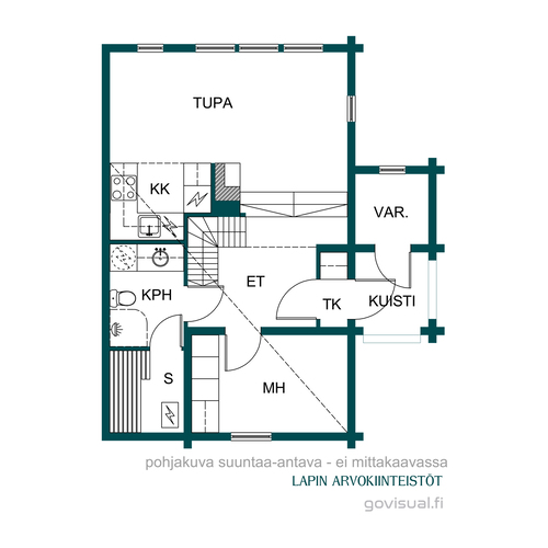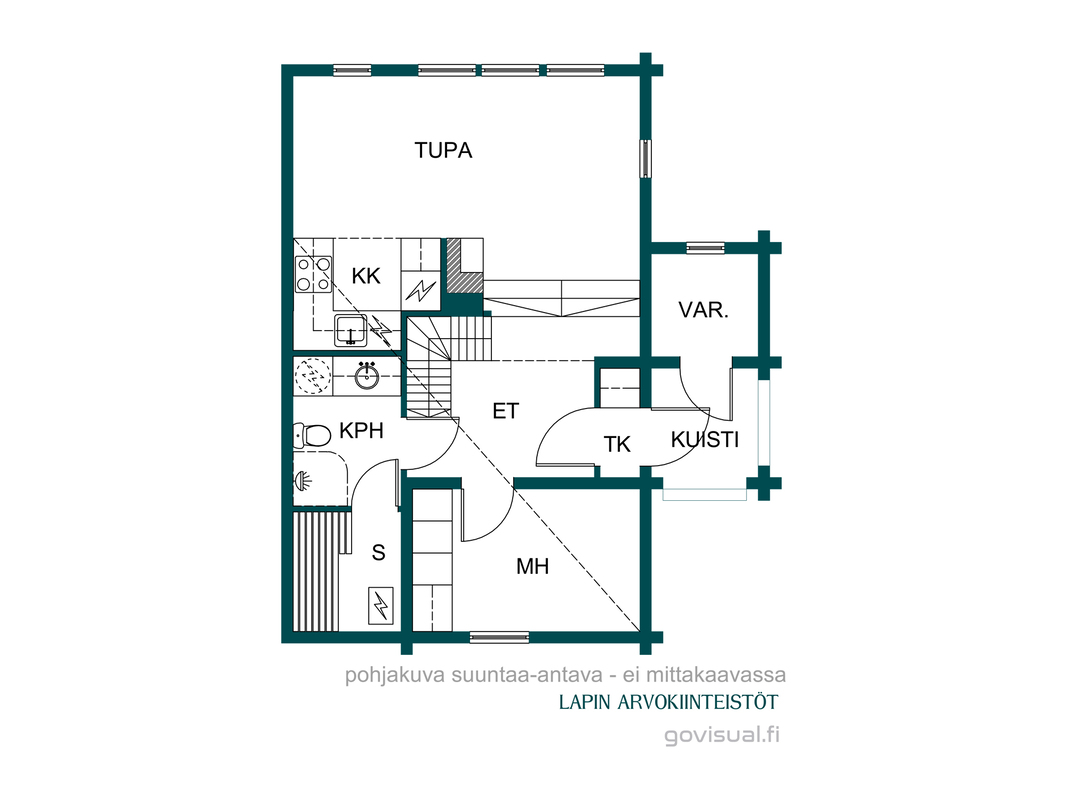 Varusteet: jääkaappipakastin, astianpesukone, sähköliesi, liesikupu, liesituuletin