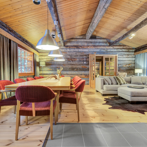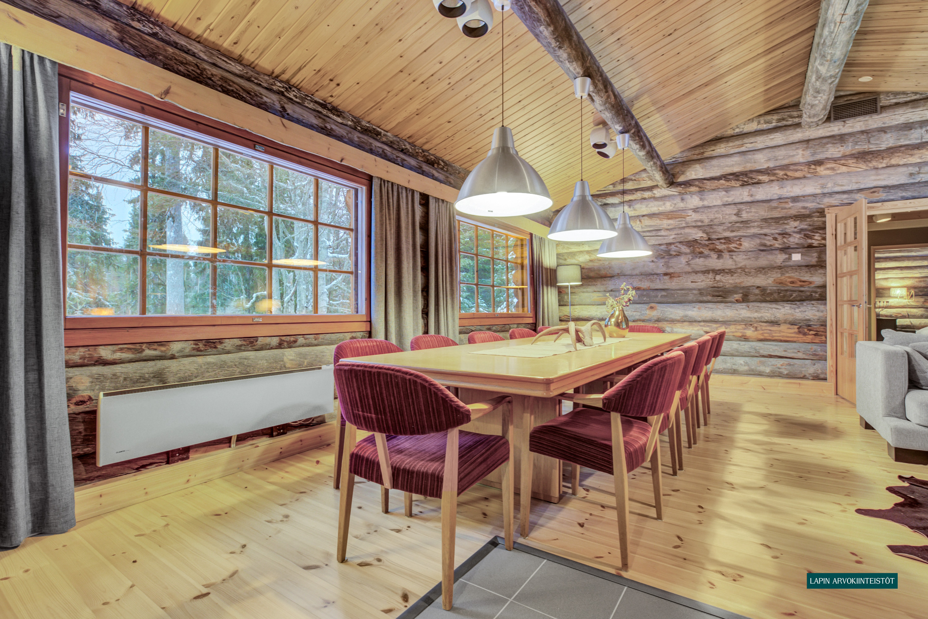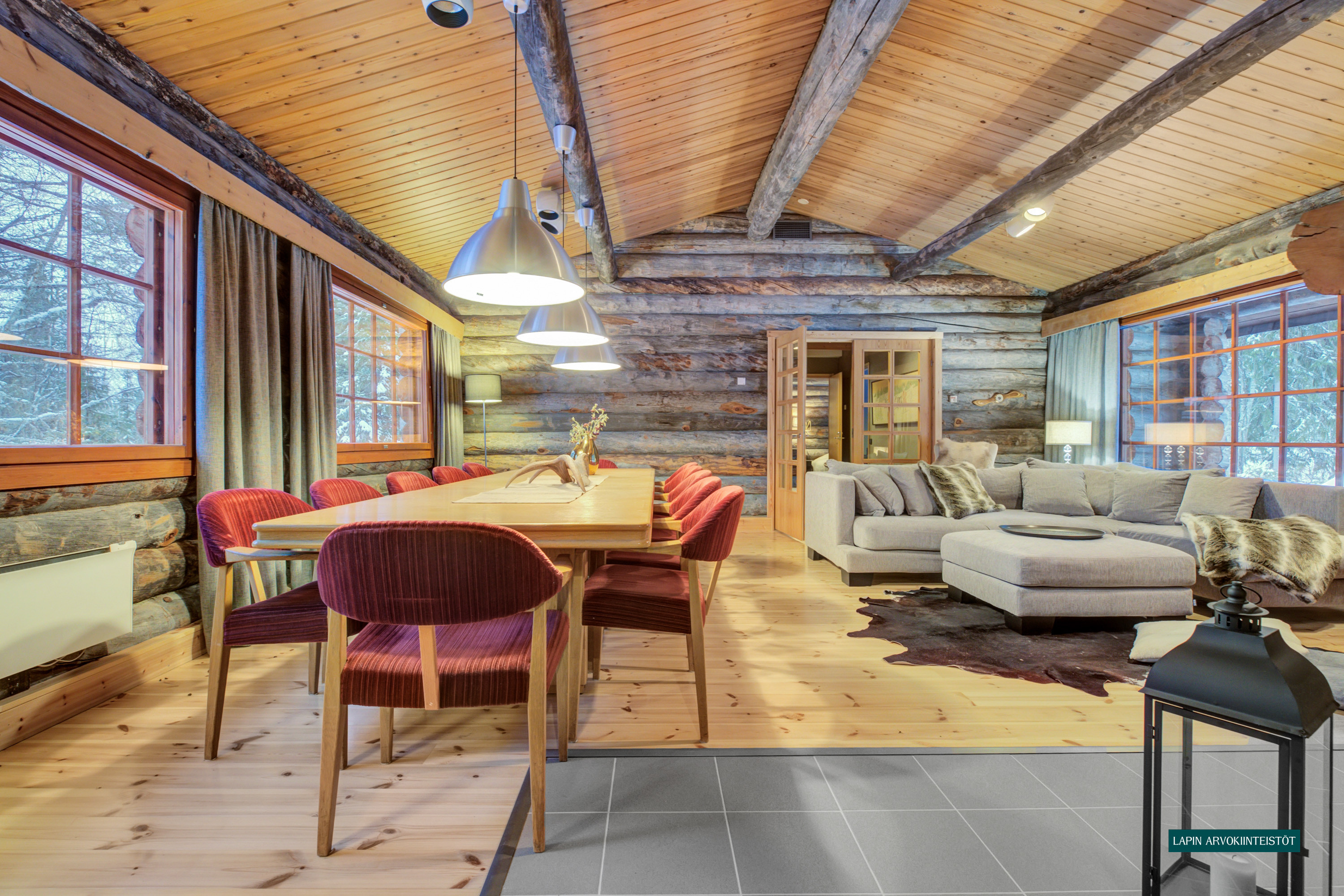 Tämä upea 5 makuuhuoneen kelohirsimökki sijaitsee aivan Luoston keskustan tuntumassa, vain 5 minuutin kävelymatkan etäisyydellä Luoston laskettelukeskuksen palveluista. Sijainti on kultaakin arvokkaampi – naapurustossa saat nauttia sekä rauhallisesta luonnonympäristöstä että välittömästä pääsystä aktiviteetteihin ja palveluihin.