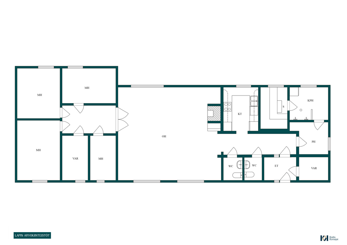 Tilava 142 neliön asuintila tarjoaa mukavuutta suurellekin seurueelle. Edustava olohuone 12 hengen ruokailutiloineen ja suurine takkoineen muodostaa kodin sydämen. Viisi makuuhuonetta plus makuuparvi antavat joustoa niin perhe-elämään kuin vuokraukseen. Käytännöllinen kylpyhuone tarjoaa kaksi suihkua sekä rennon saunaosaston.