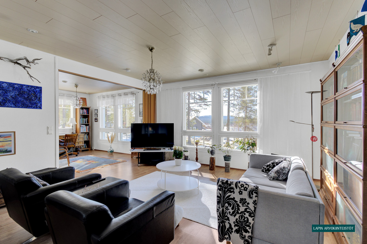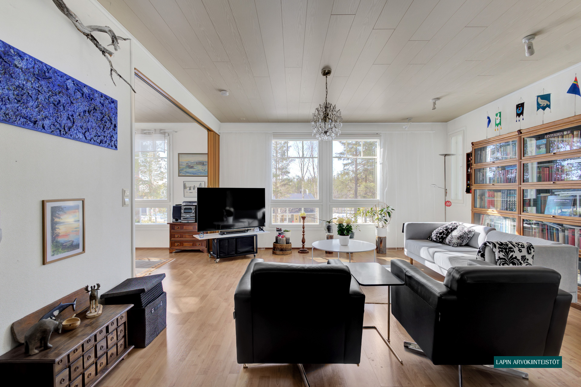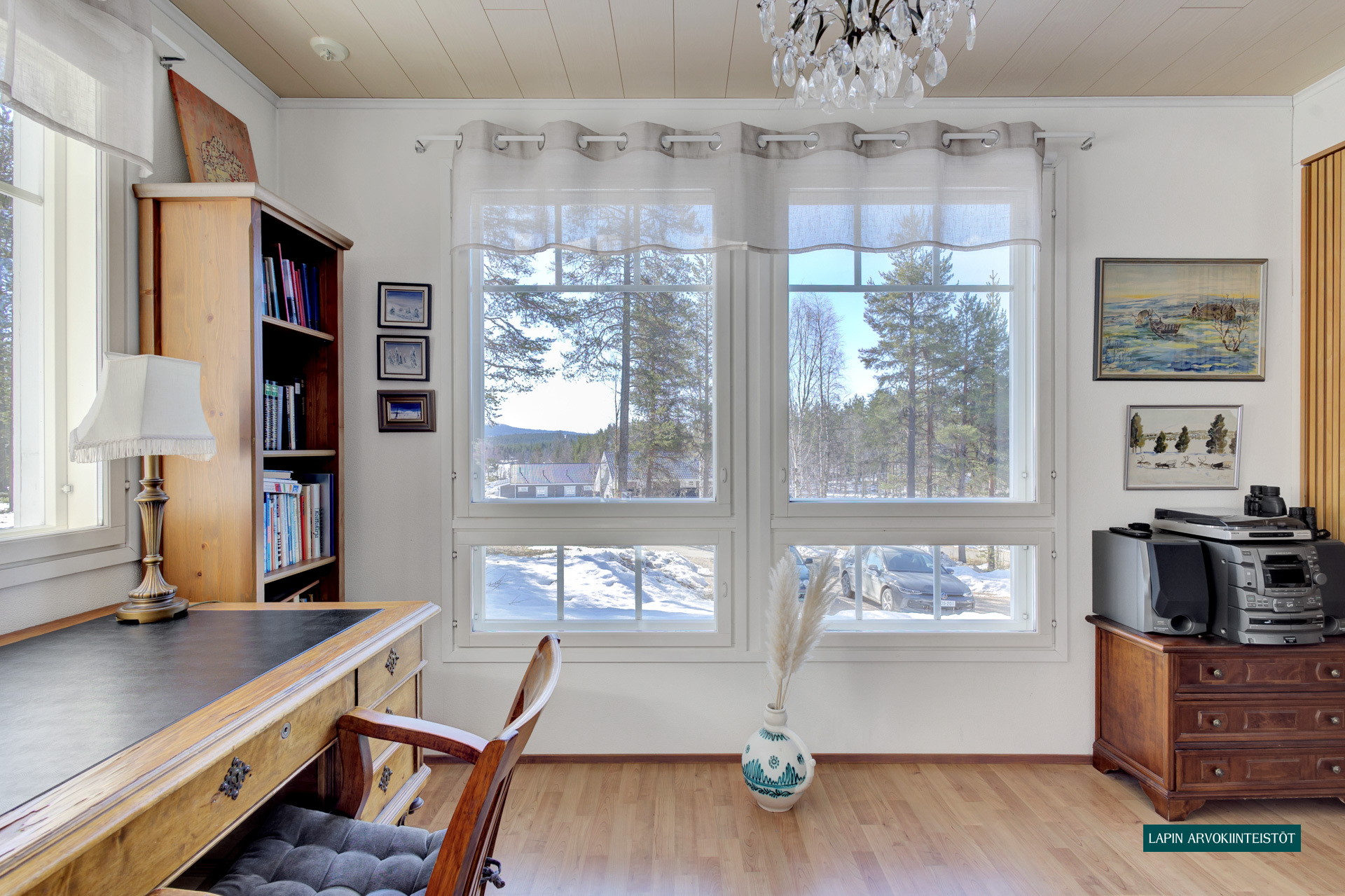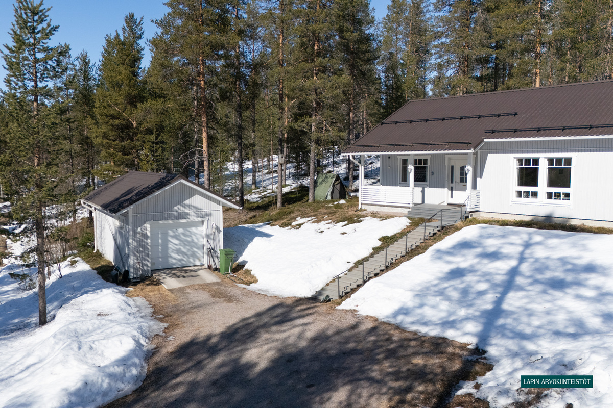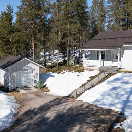 Tämä upea omakotitalo sijaitsee Muoniossa, Särkijärventiellä, keskellä Lapin lumoavaa luontoa.