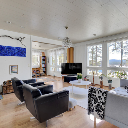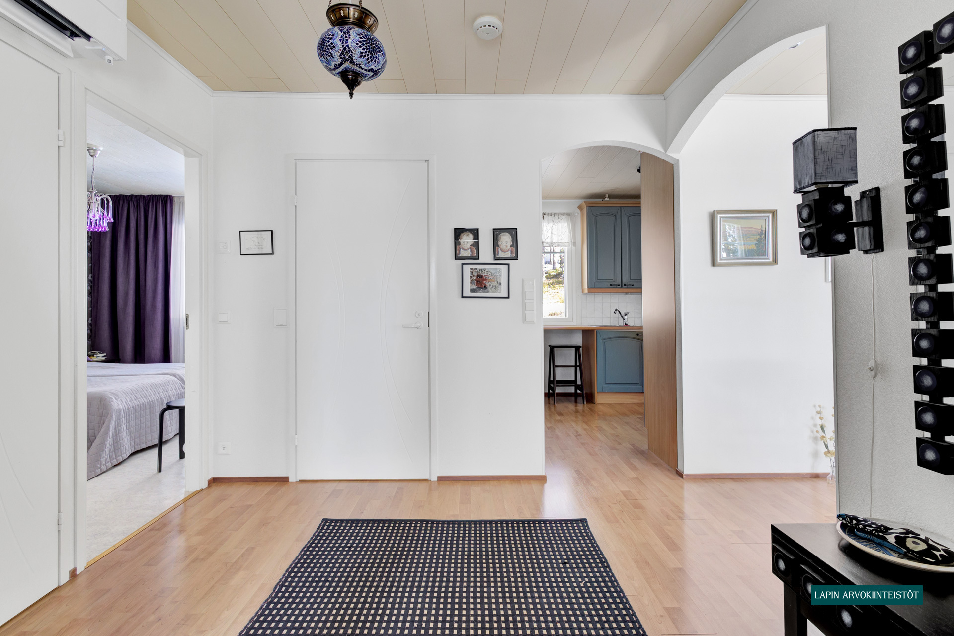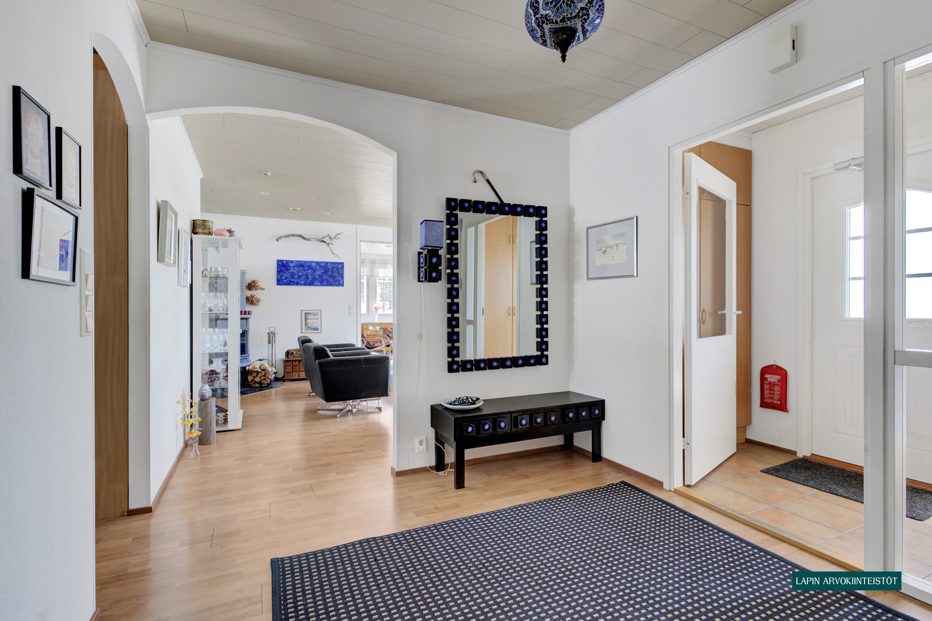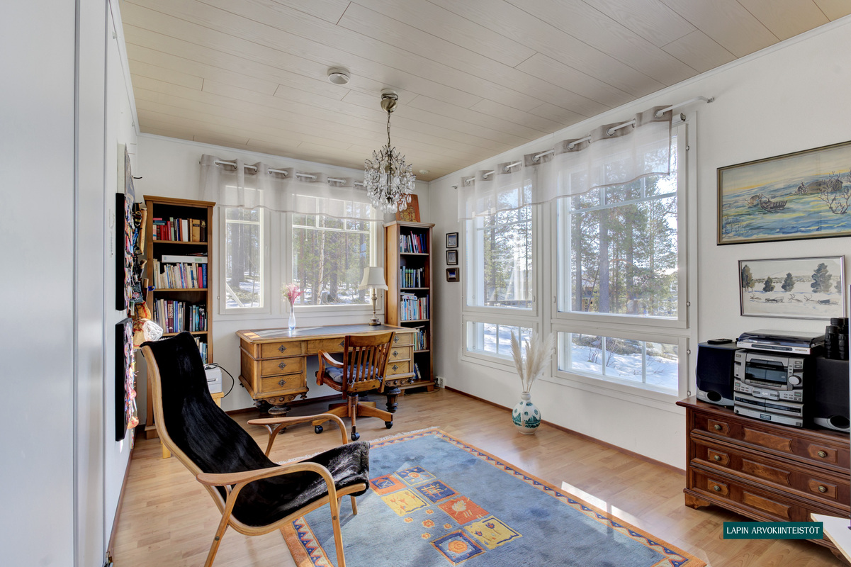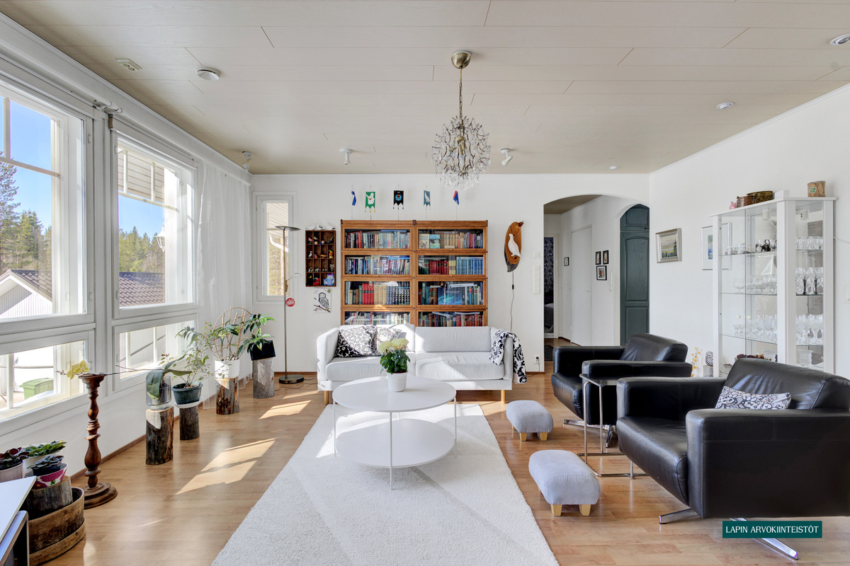 Tämä upea omakotitalo sijaitsee Muoniossa, Särkijärventiellä, keskellä Lapin lumoavaa luontoa.