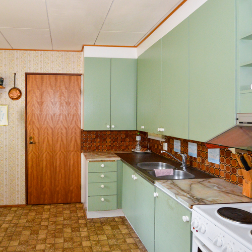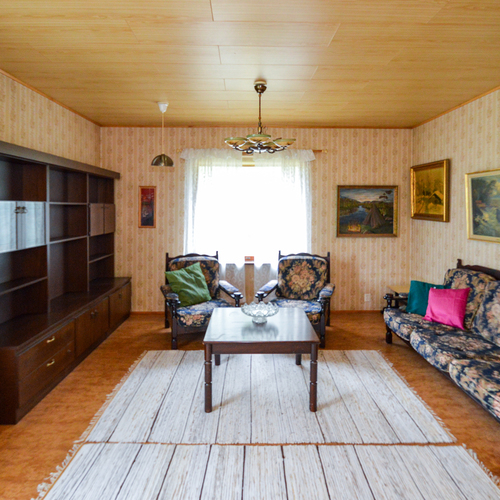 Omakotitalo, kerrosalaltaan 118 m² jossa kaksi makuuhuonetta, olohuone, keittiö, takkahuone, kph/s, wc ja kammari jolla oma uloskäynti. Omalla tontilla 2080 m² lisäksi talousrakennus. Talousrakennuksessa autotalli jossa rasvamonttu, verstastila ja puuvarasto sekä päädyssä kelkkatalli jossa ovet molemmissa päissä.