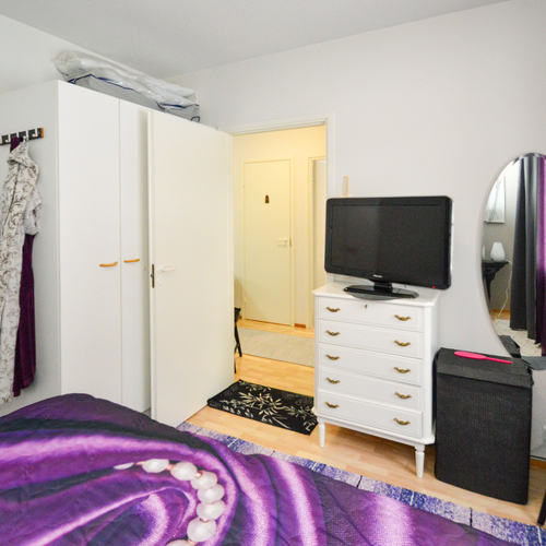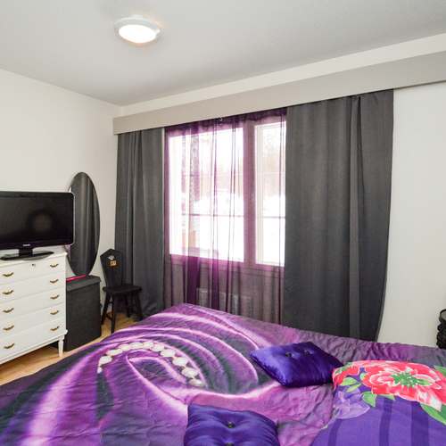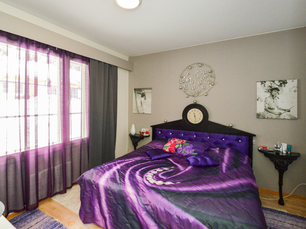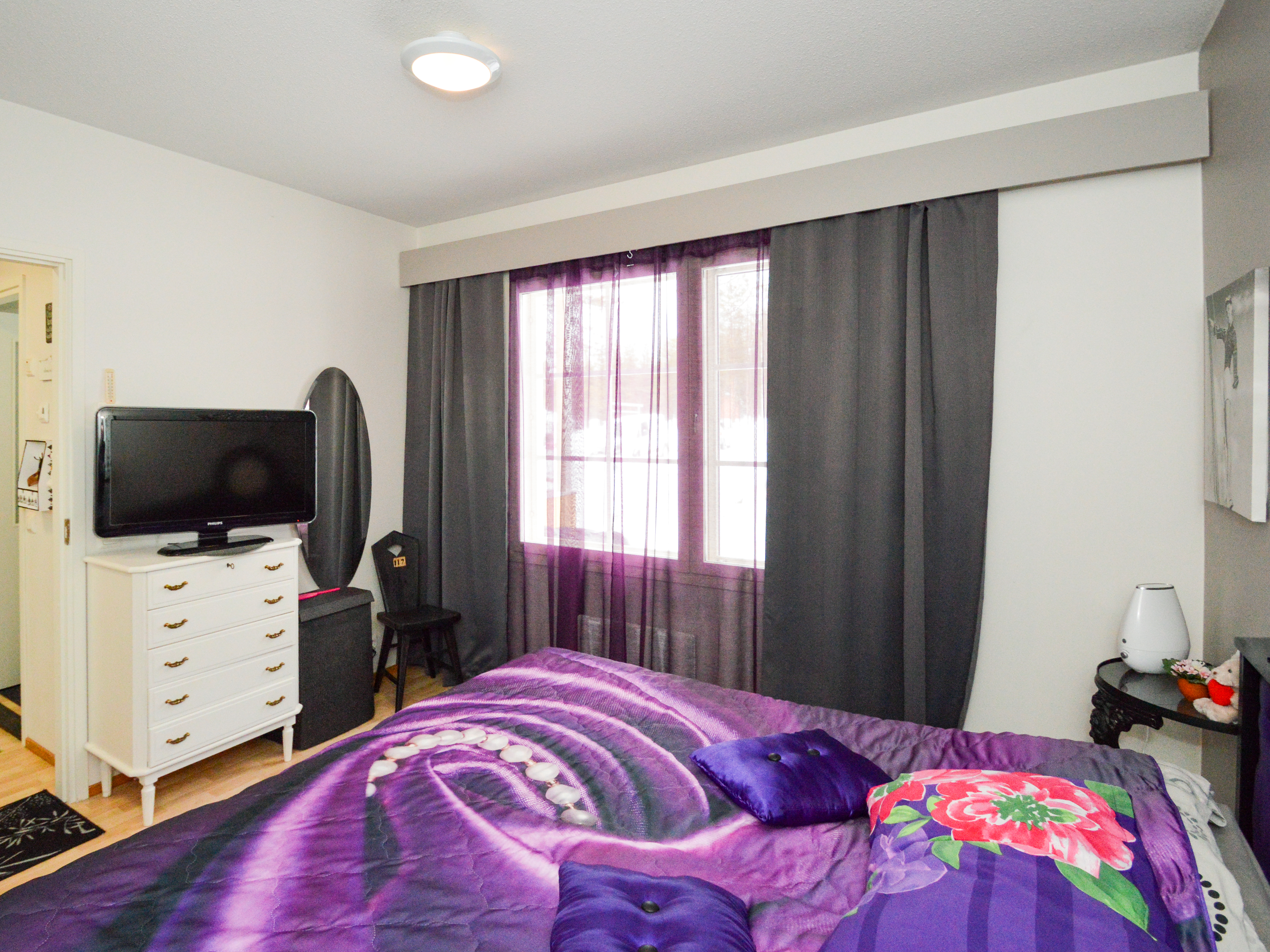 Makuuhuoneiden kalusteet, mm. sänky ja tv sisältyvät kauppaan.