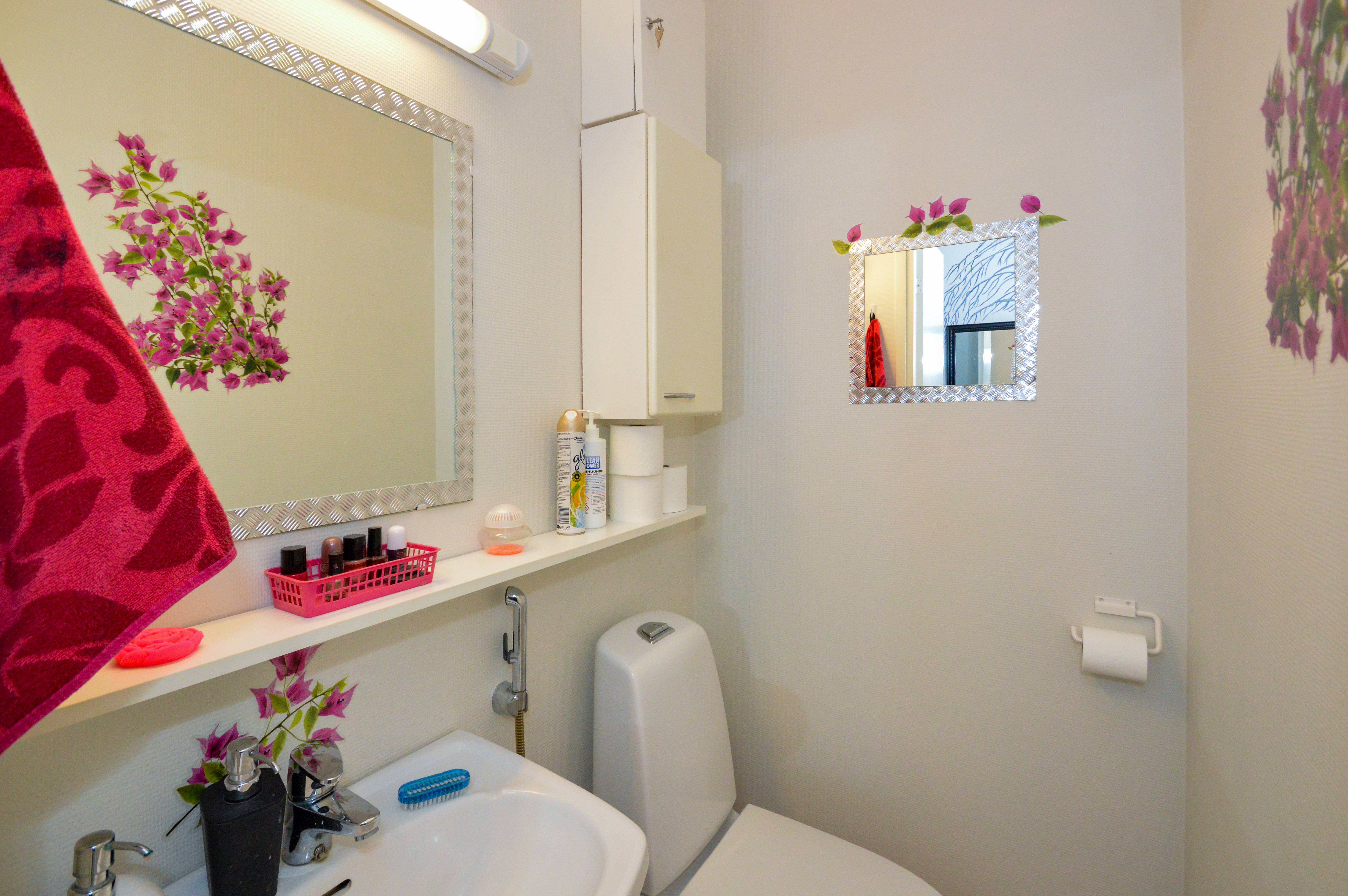 Varusteet: lattiaan asennettu WC, bidee, lattialämmitys, peili