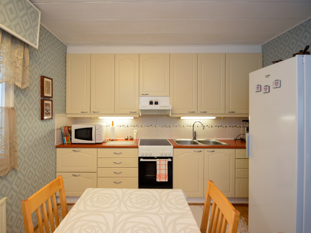 Varusteet: liesituuletin, kiinteät valaisimet, jääkaappi, keraaminen liesi, liesikupu