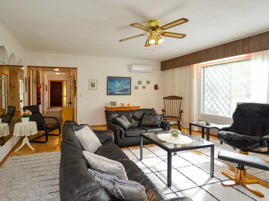 3 makuuhuonetta, olohuone, keittiö, kylpyhuone/sauna, wc, Pannuhuone