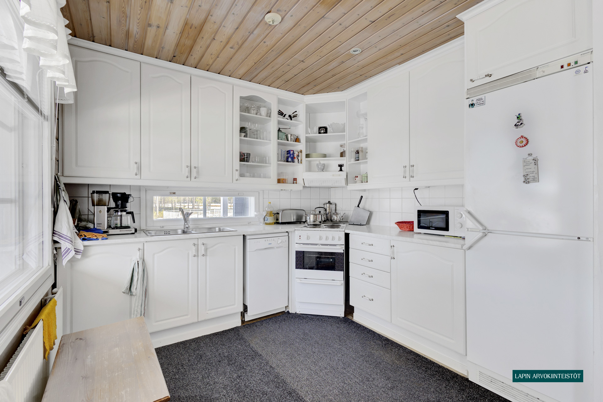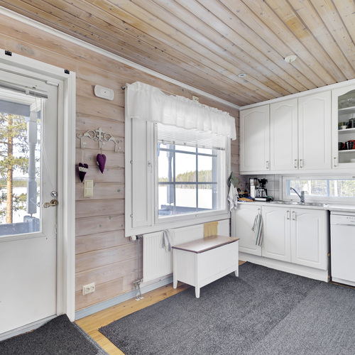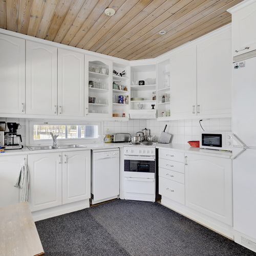 Varusteet: jääkaappipakastin, sähköliesi, liesituuletin hormilla, liesituuletin, mikroaaltouuni, astianpesukone, varattu paikka astianpesukoneelle, astianpesukoneliitäntä, kiinteät valaisimet