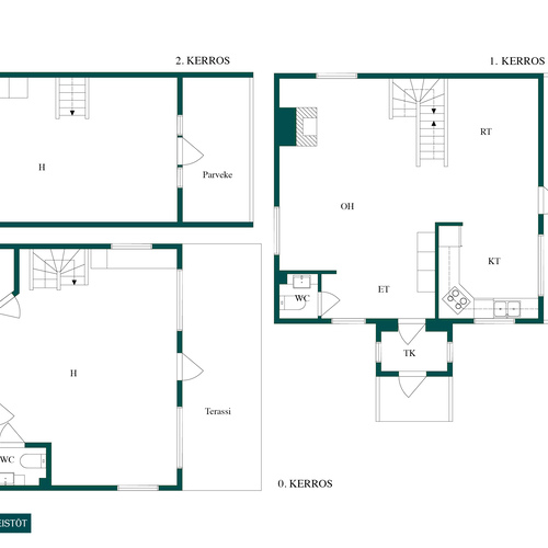 Mikä pinta-ala on kyseessä: Pohjakuvien perusteella arvioitu asuinpinta-ala 120 m². Pinta-alaa ei ole tarkistusmitattu.