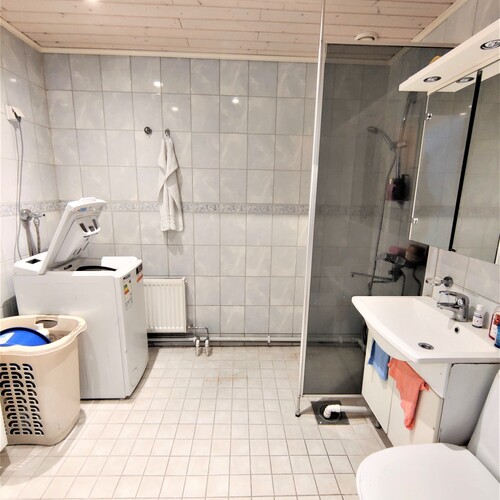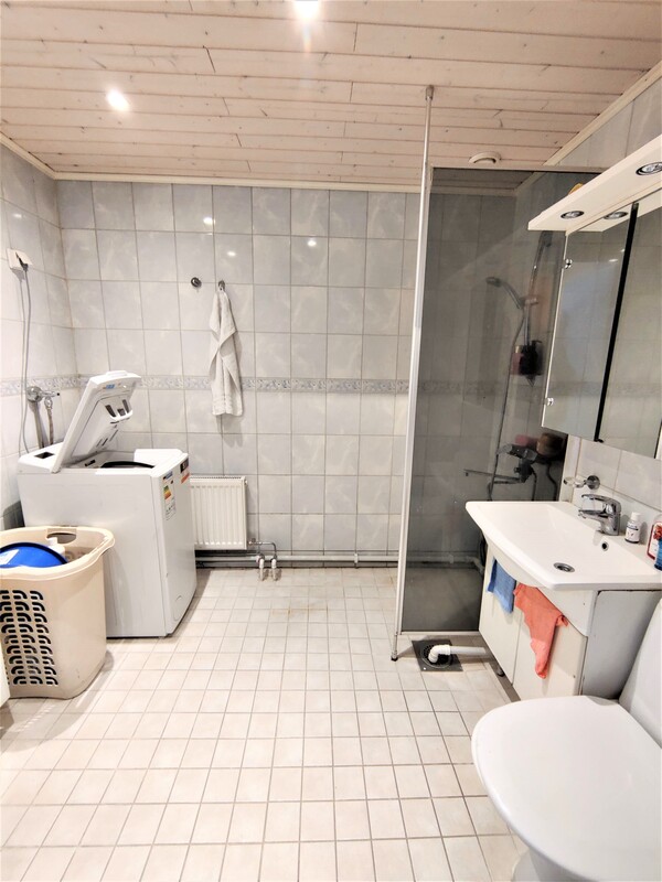 Varusteet: pesukoneliitäntä, wc-istuin, suihku, peilikaappi